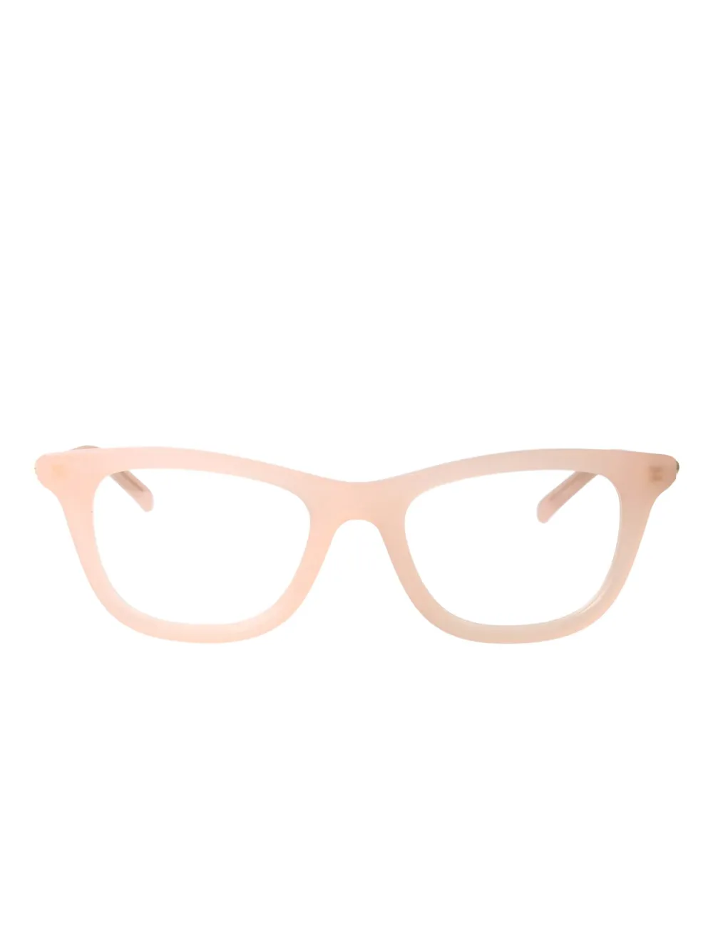 Светло-розовая оправа квадратной формы, детали с логотипом, прямые заушники. Все очки на FARFETCH продаются как оправа без коррекции. Очки поставляются с защитным футляром.
