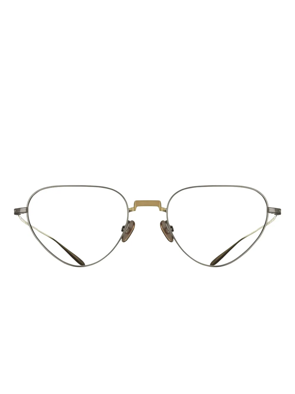 Золотистый оттенок геометрическая оправа изогнутые заушники носовые упоры Все очки на FARFETCH продаются без корректирующих линз (без диоптрий). Эти очки идут в комплекте с защитным футляром.