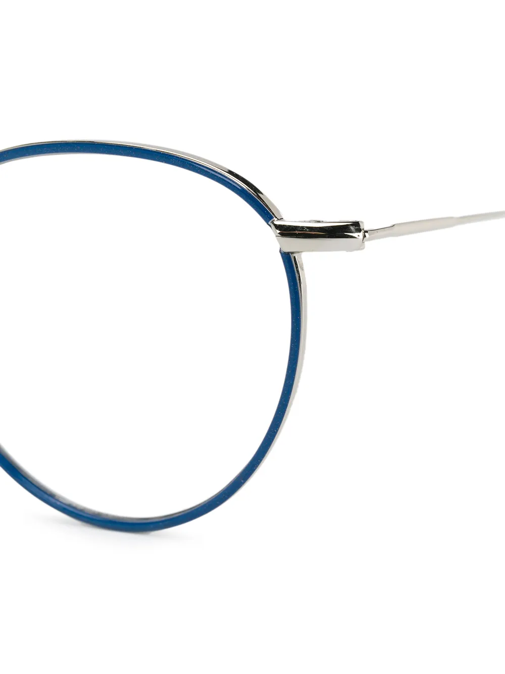 Очки Pascal от Eyepetizer. Овальная оправа, серебристые дужки и логотип бренда на внешней стороне дужки. Цвет: синий. Прилагается защитный чехол.