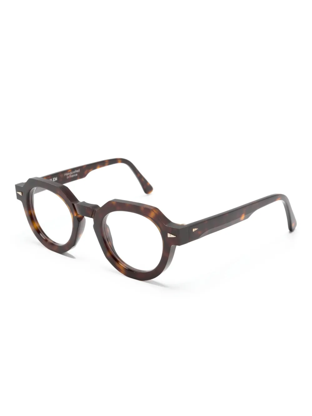 Темно-коричневый, ацетат, черепаховая расцветка, золотистая фурнитура, круглая оправа, прозрачные линзы, носоупоры, прямые дужки и дужки с закругленными концами. В комплект входит защитный чехол для очков. Обратите внимание, что на FARFETCH продаются оправы с линзами без диоптрий.
