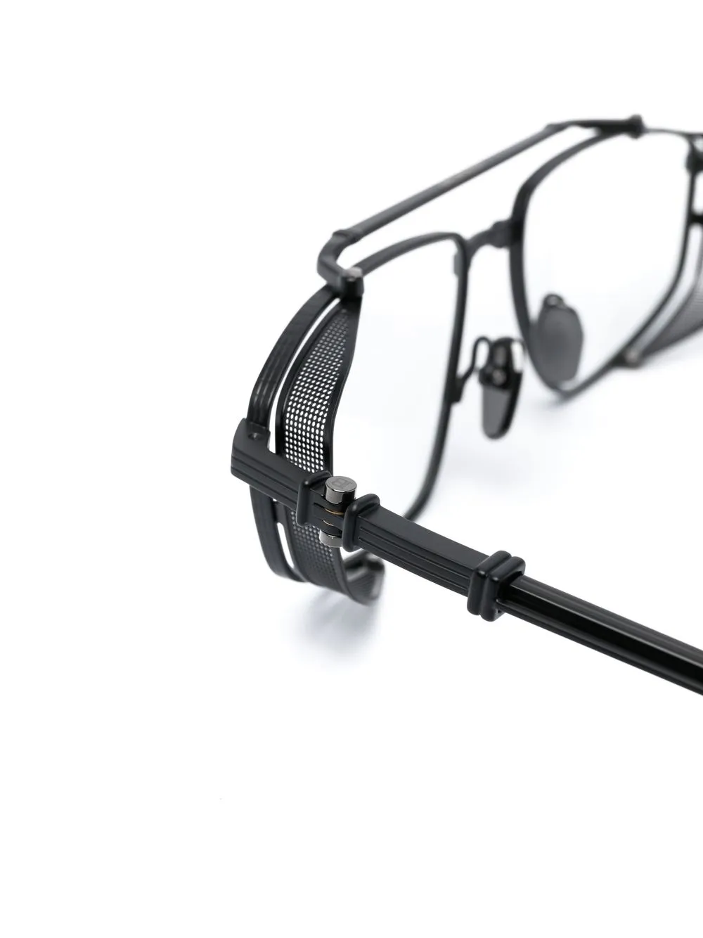 Черный, металл, прозрачные линзы и металлический логотип.
