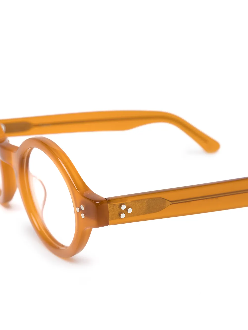 Прозрачные линзы, круглая оправа и завышенный мост. Прилагается защитный чехол.
