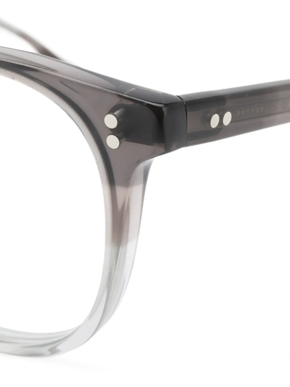 Очки 'Finley' от Oliver Peoples. Круглые оправы и прямые дужки с изогнутыми концами. Прилагается защитный чехол.