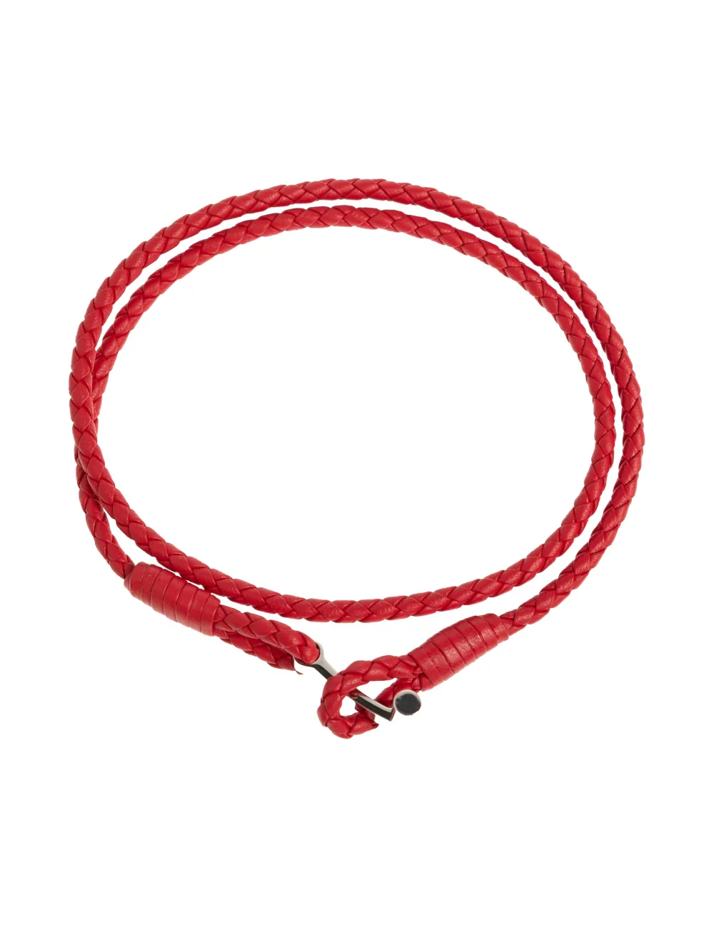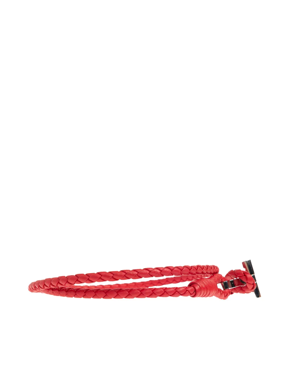 Серебристый Т-образный замок на красном плетеном ремешке