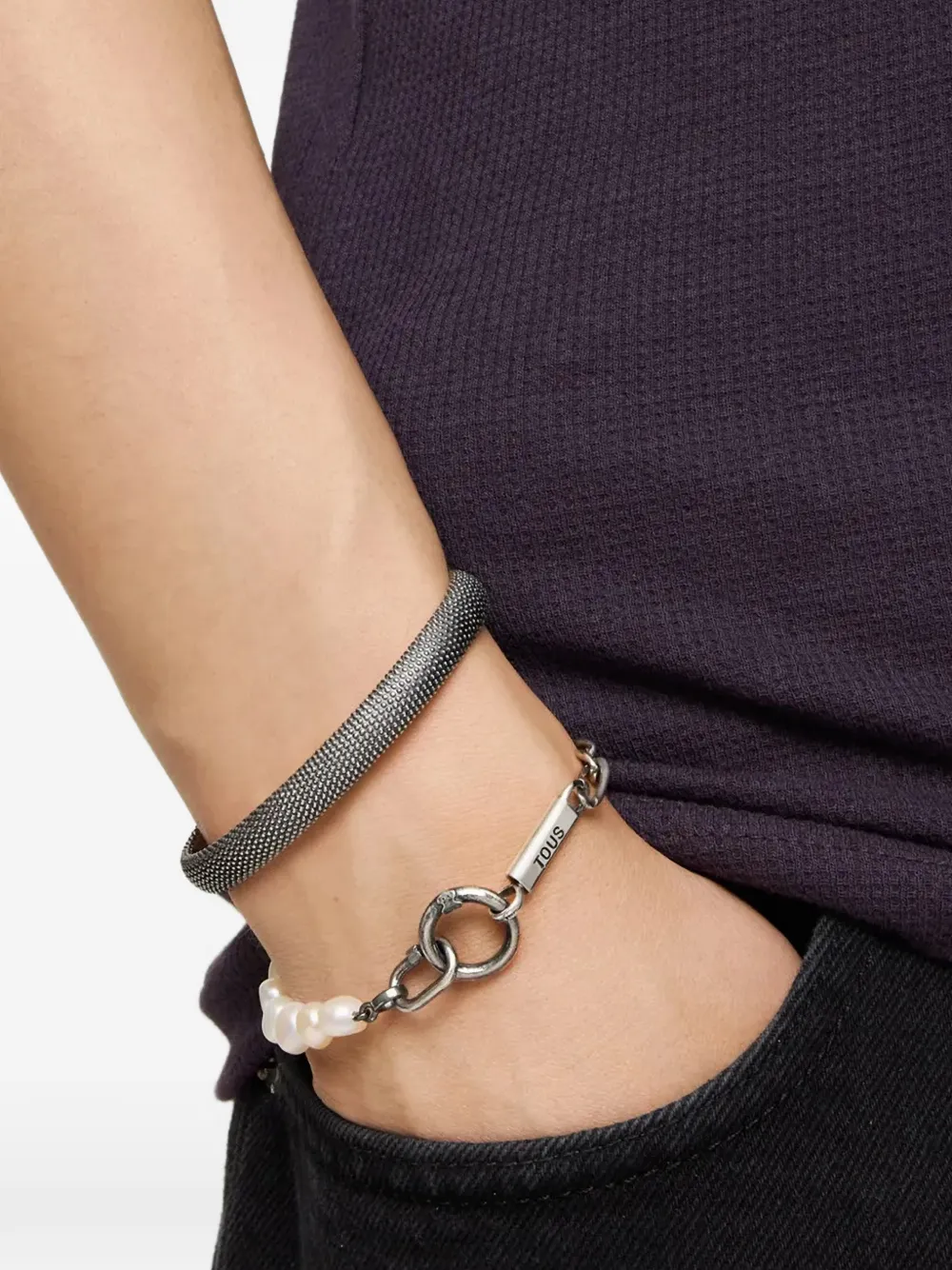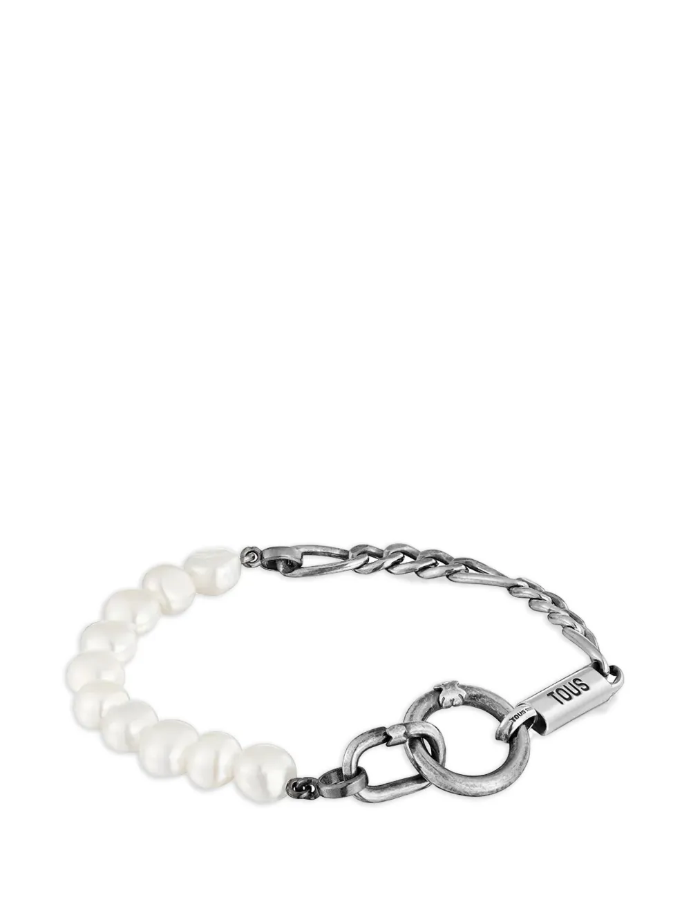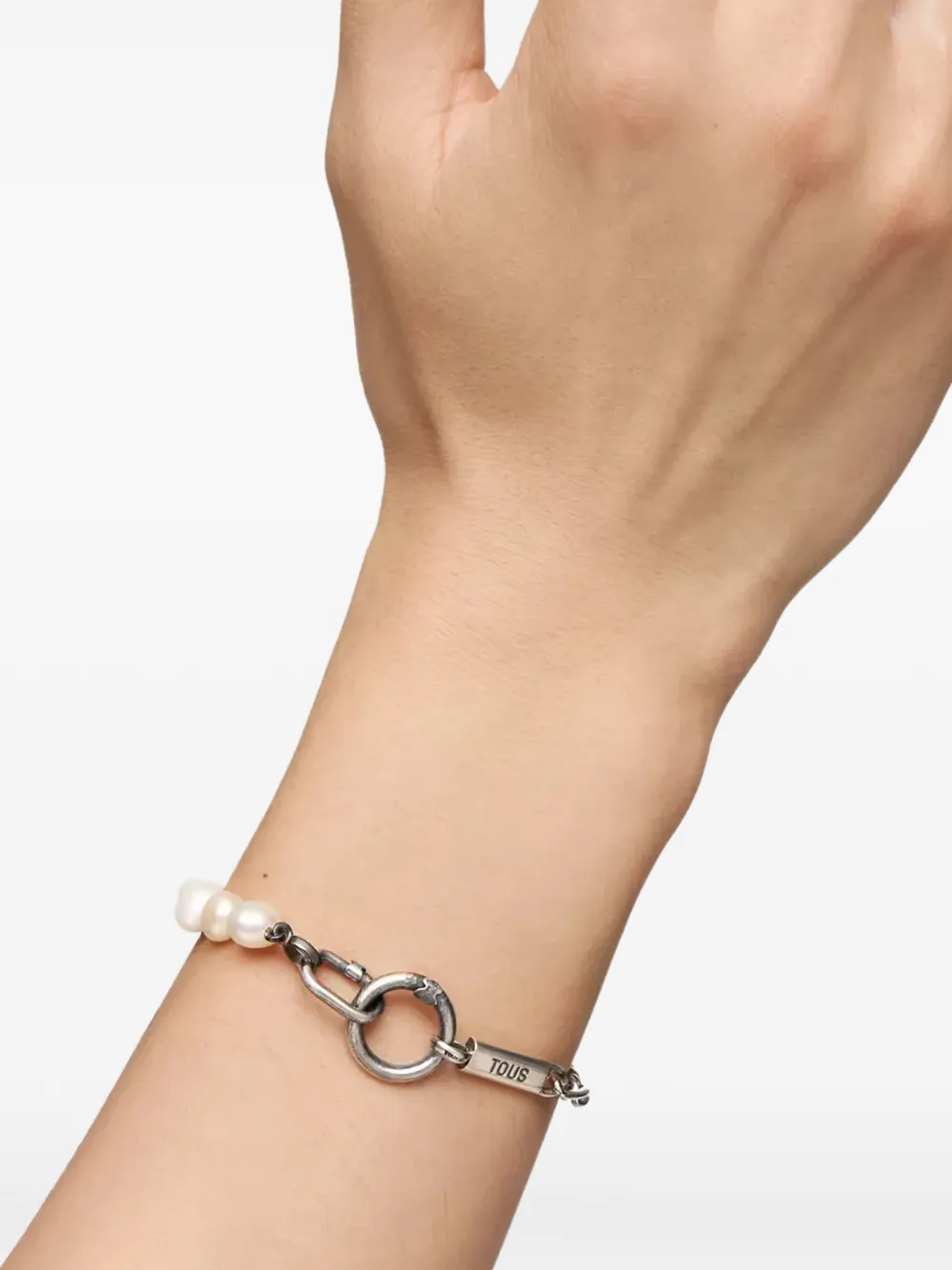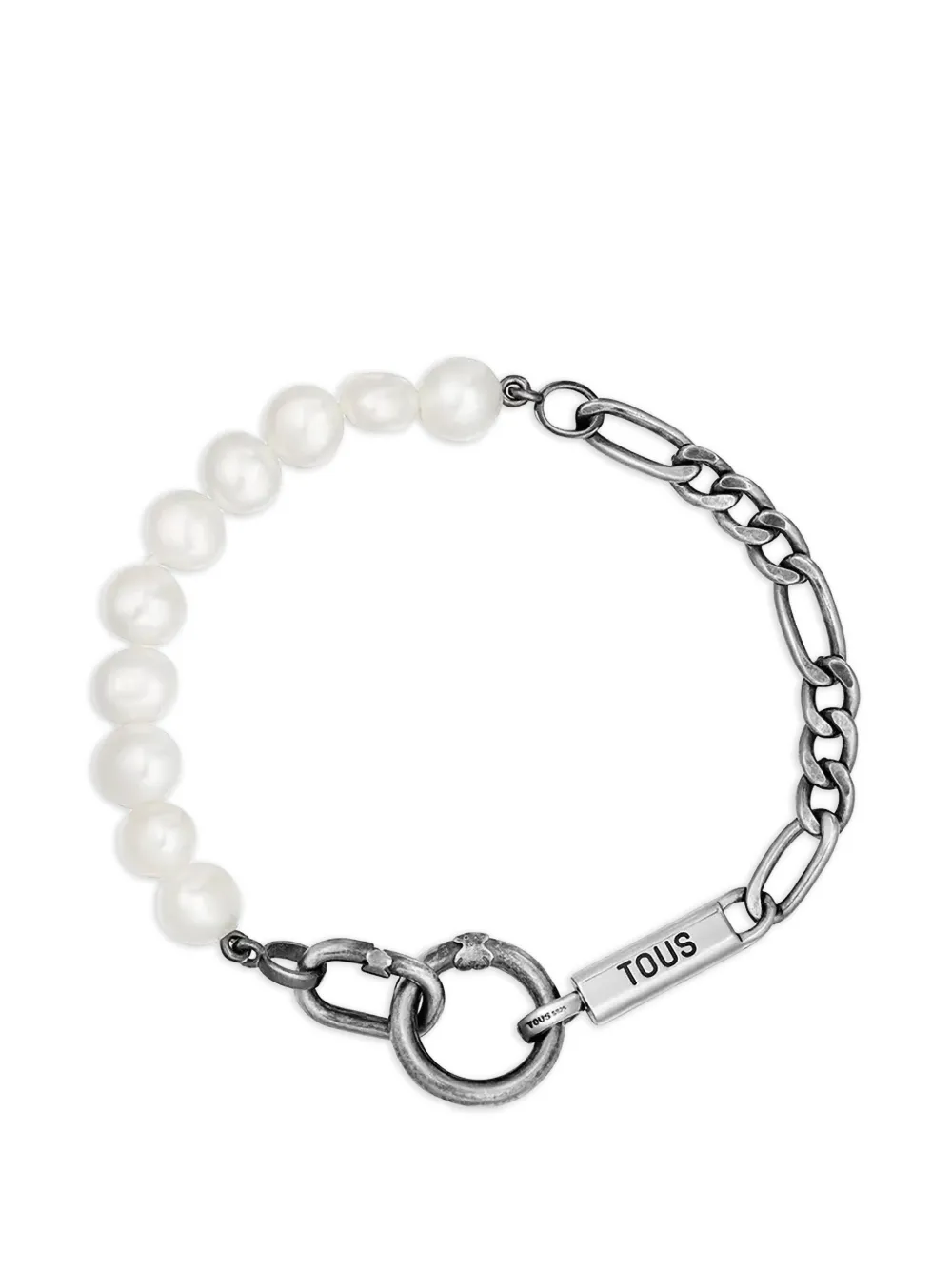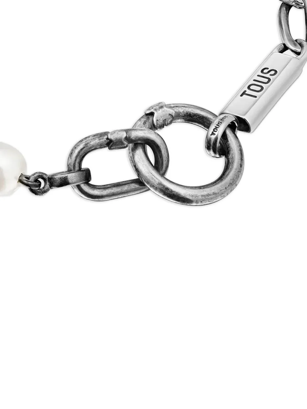 Отделка из серебристого металла, украшение из жемчуга, детали с цепочкой, деталь в виде кольца, подвеска с логотипом, застежка-карабин