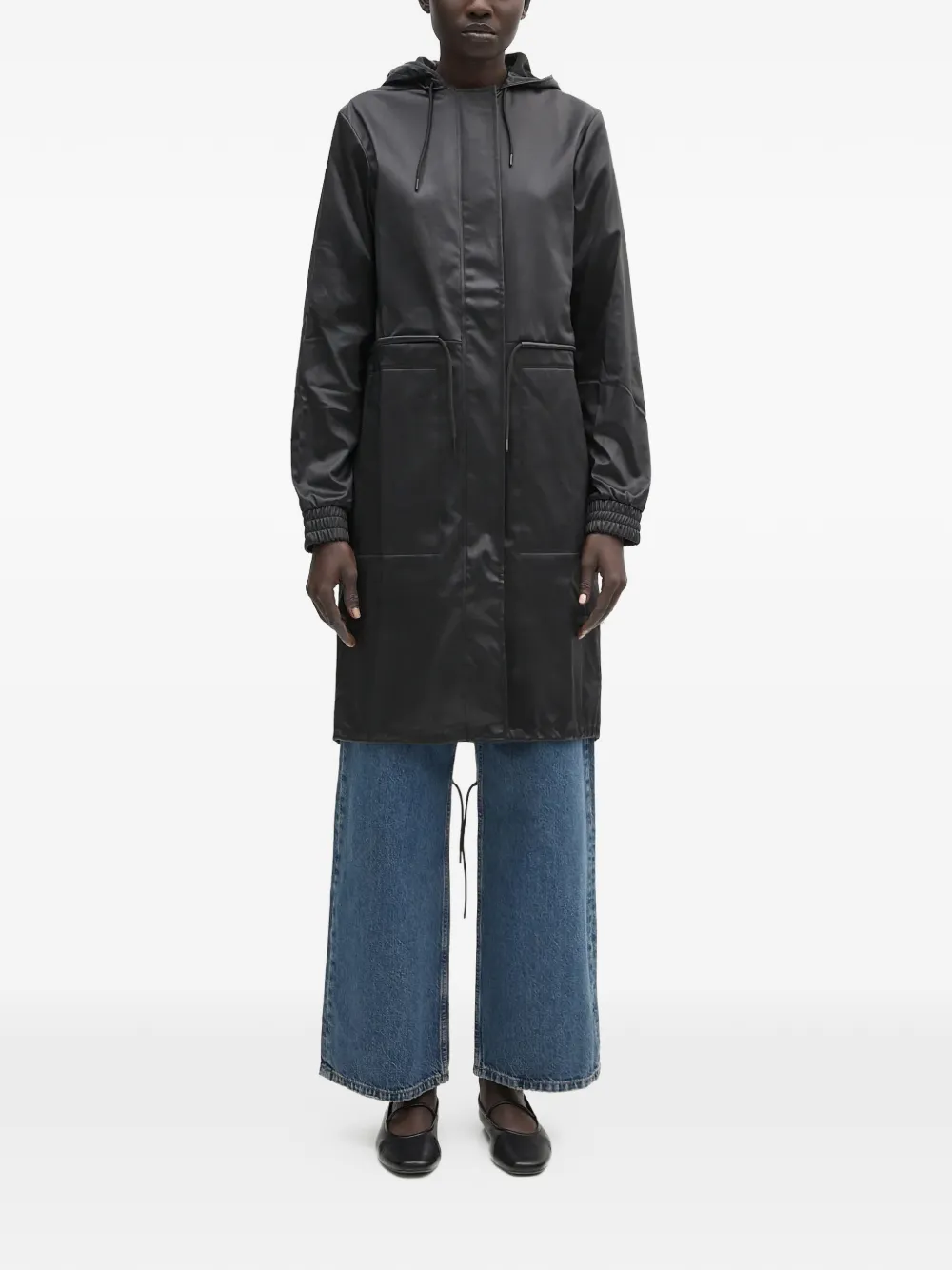 Парка с капюшоном и карманами на шнурке Rains, черный