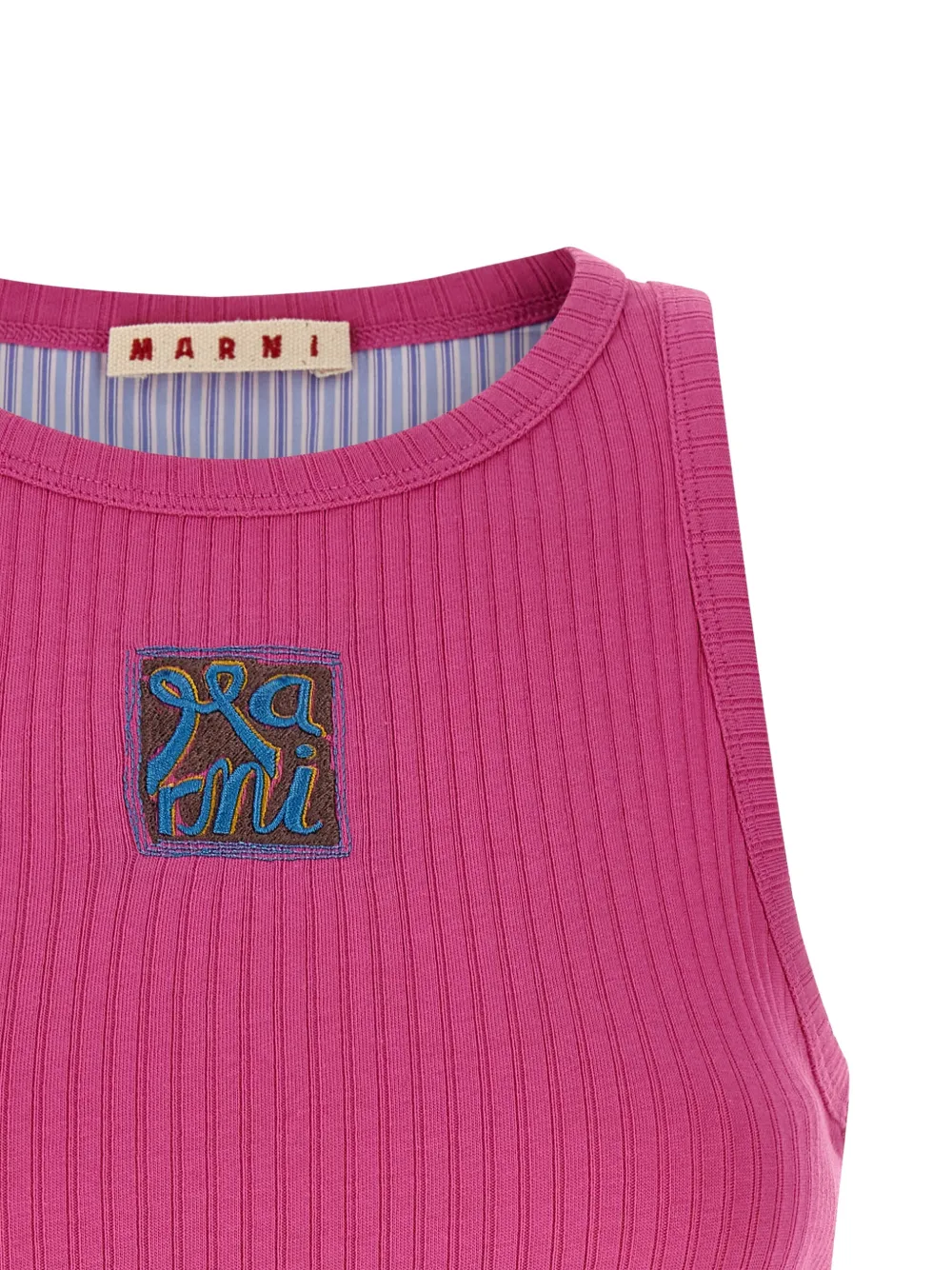 Майка в рубчик с нашивкой-логотипом Marni, розовый