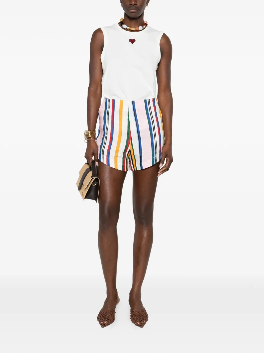 Белоснежный топ без рукавов с мотивом сердца, круглым вырезом горловины и тональной строчкой