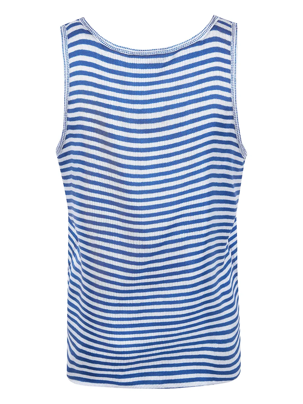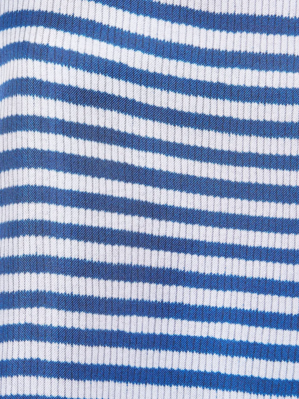 Джинсово-синяя полосатая шелковая безрукавка с ребристой текстурой
