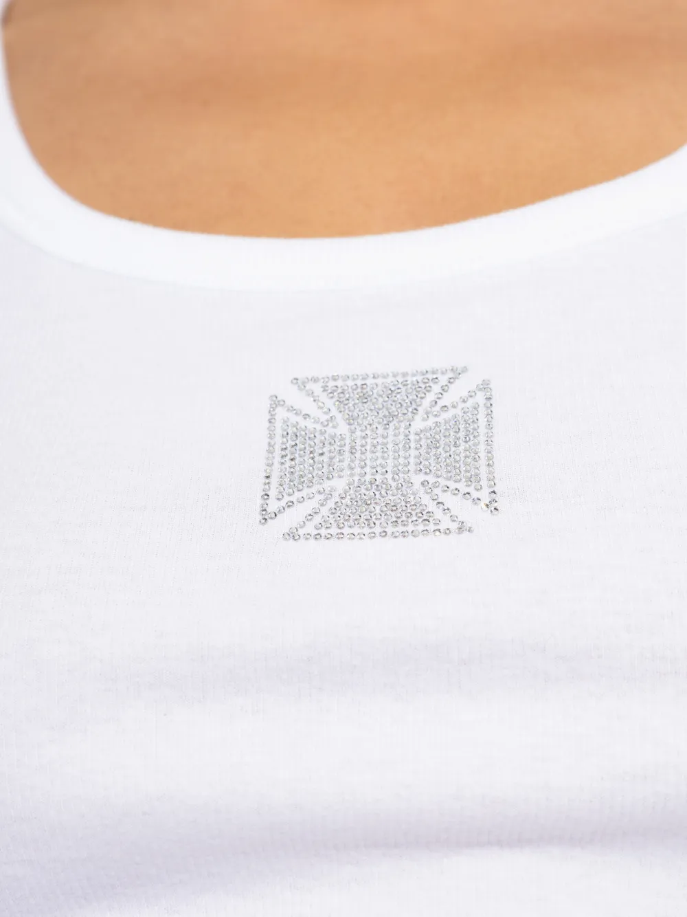 Белый топ без рукавов с круглым вырезом и украшенными деталями
