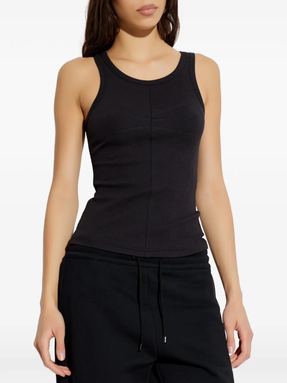 Черный трикотажный топ без рукавов с круглым вырезом