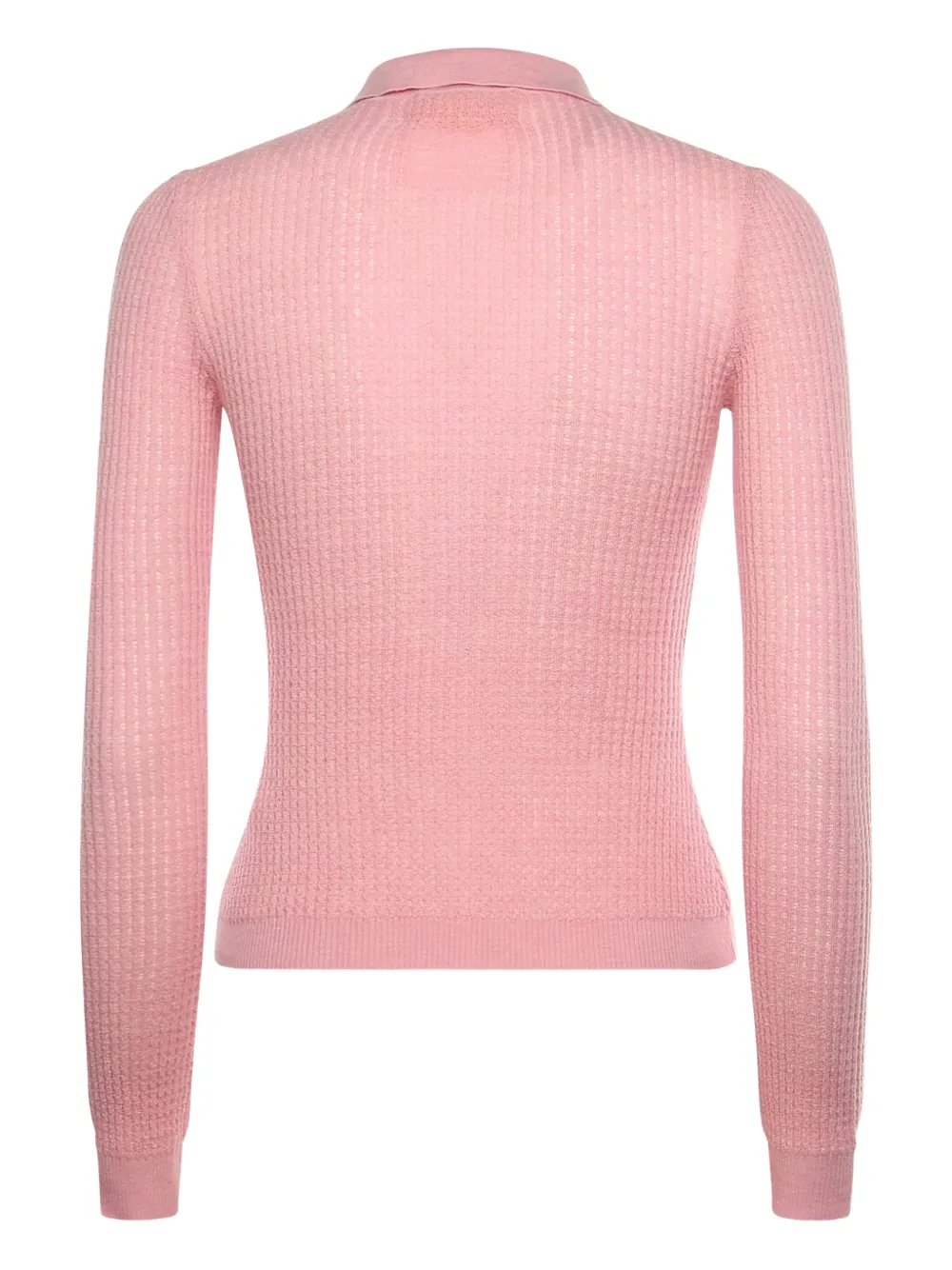 Светло-розовый рубашечный воротник, застежка на пуговицы, длинные рукава, кашемир в рубчик