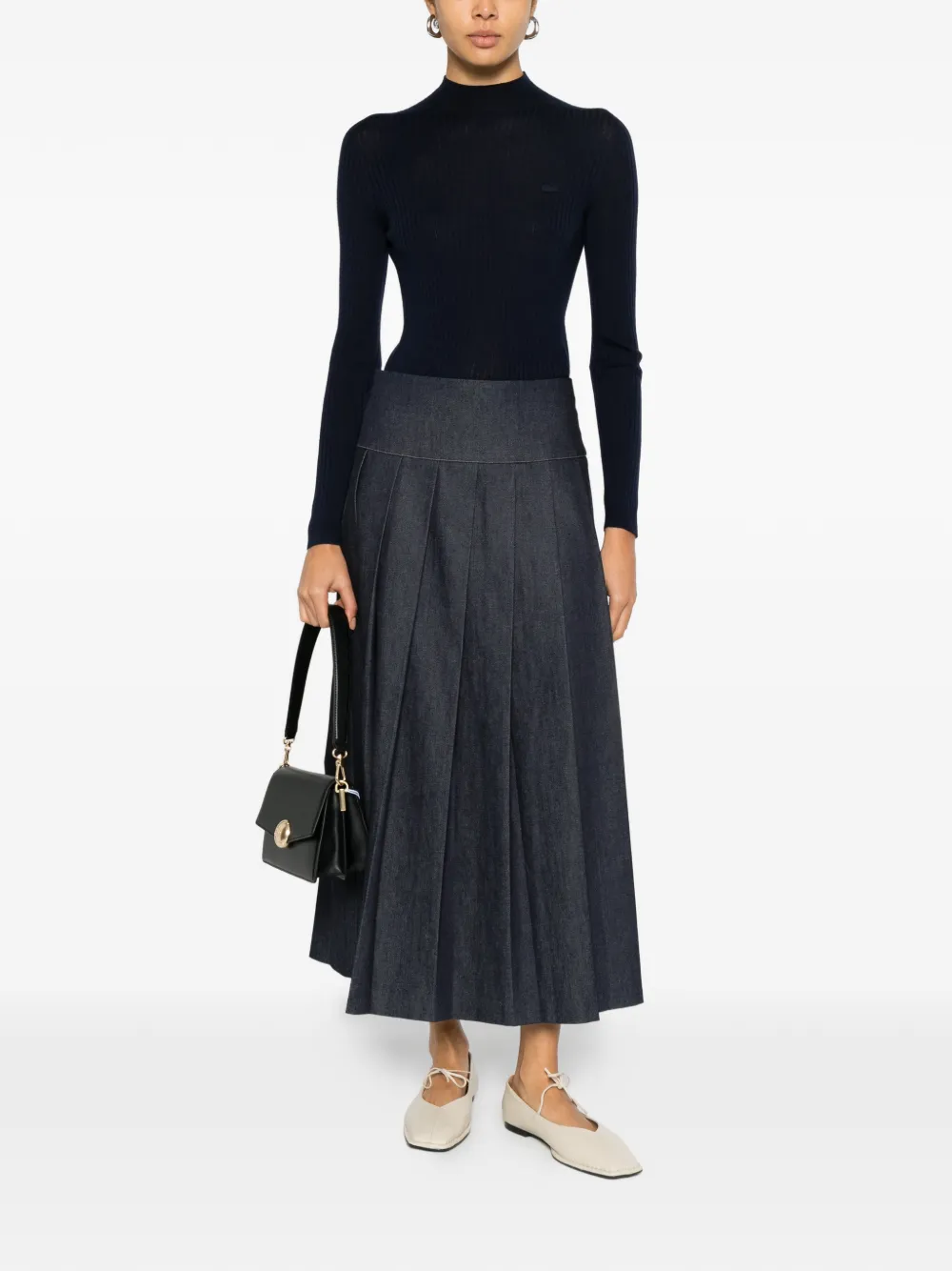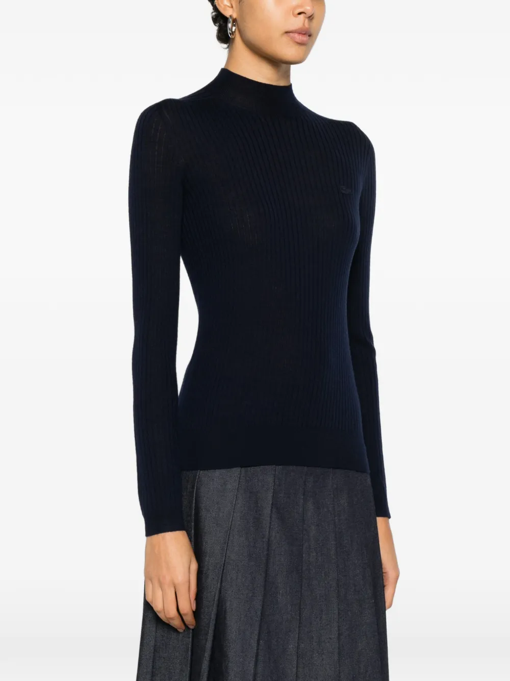 Темно-синий в рубчик, круглый вырез, длинные рукава