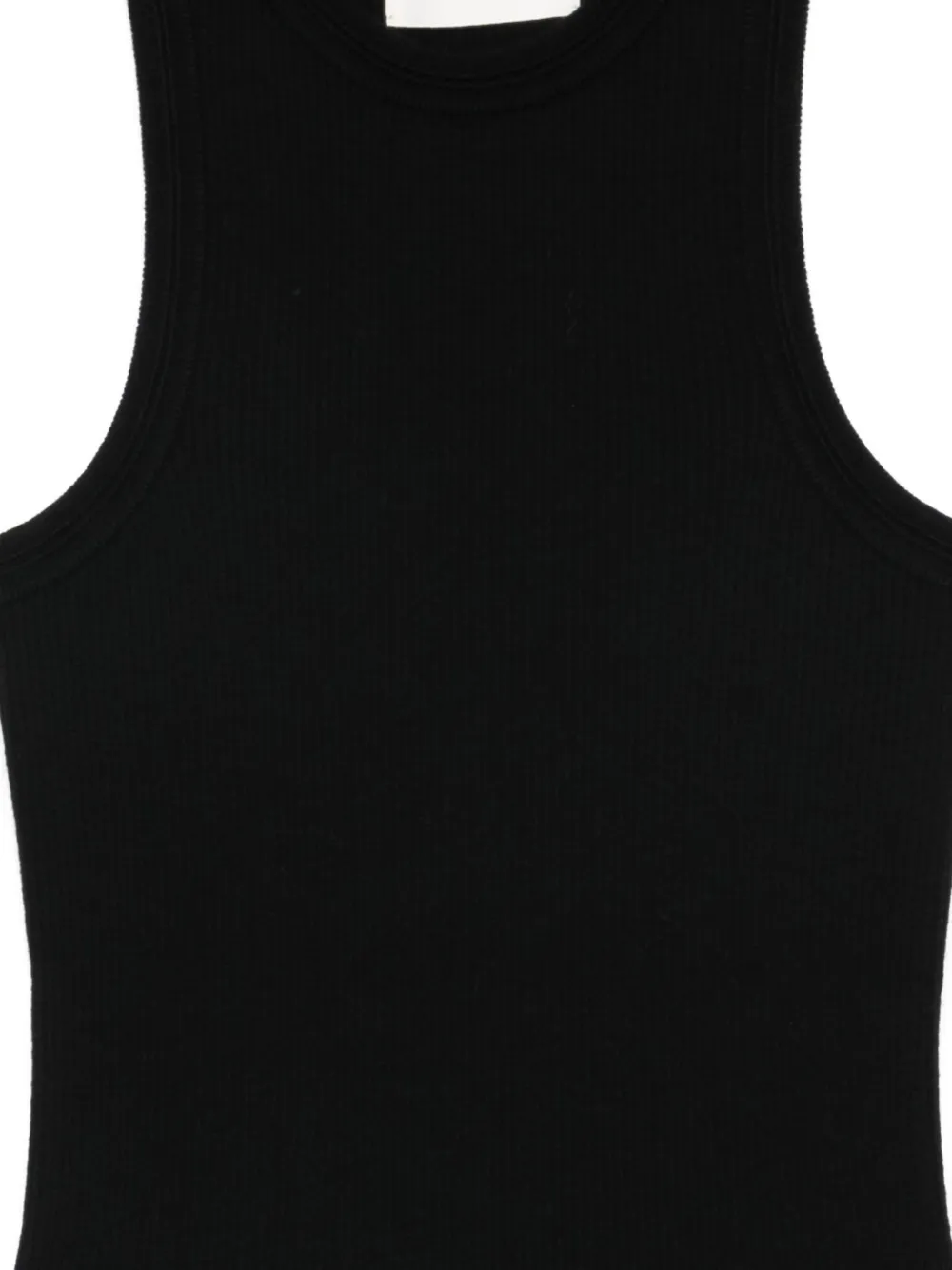 Черная майка без рукавов с ребристой текстурой и круглым вырезом