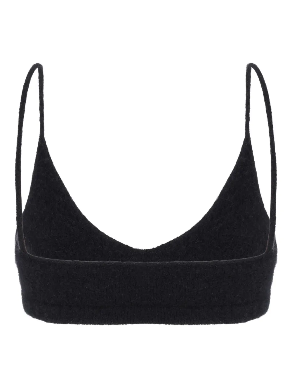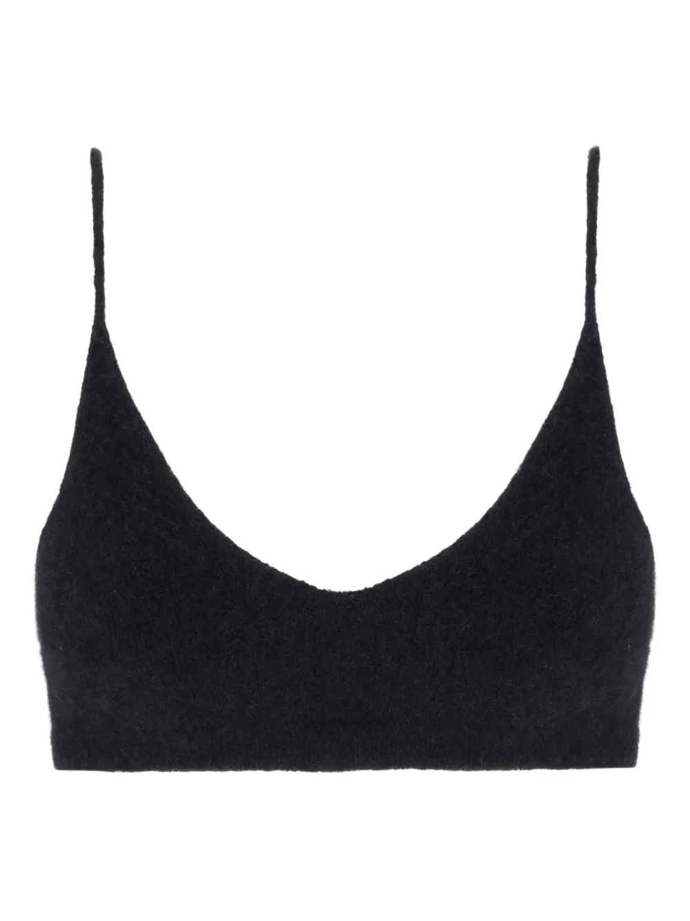 Черный вязаный топ на тонких бретелях укороченного кроя