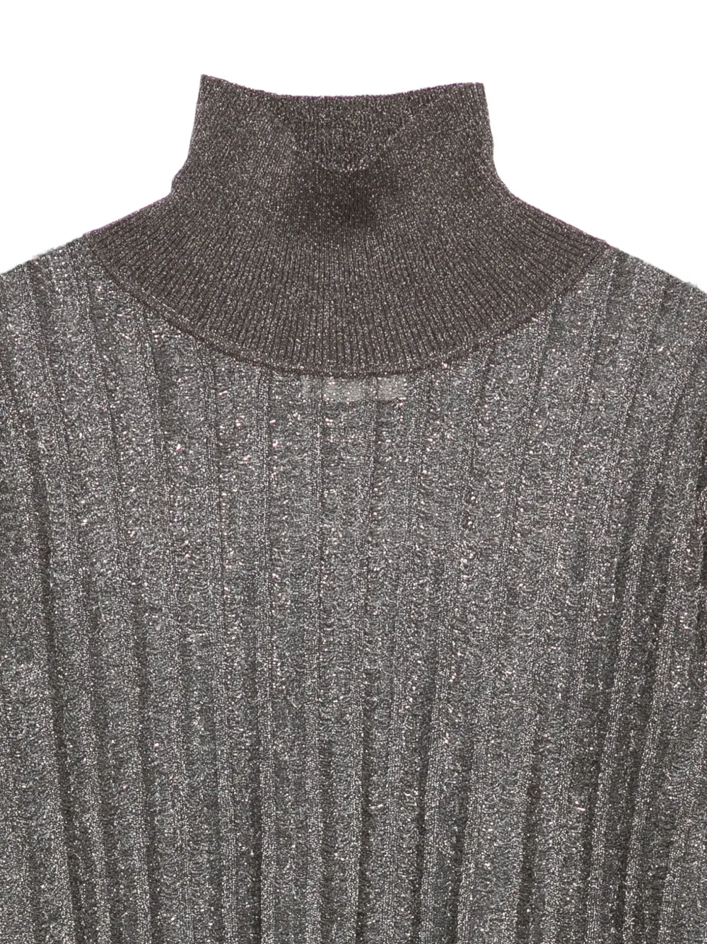 Серый металлическая нить вязаный в рубчик высокий воротник длинные рукава прямой край хлопок