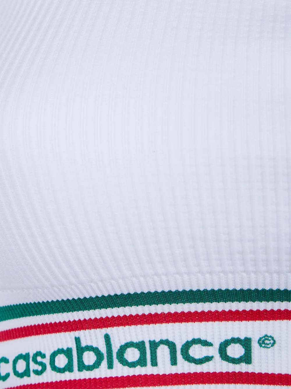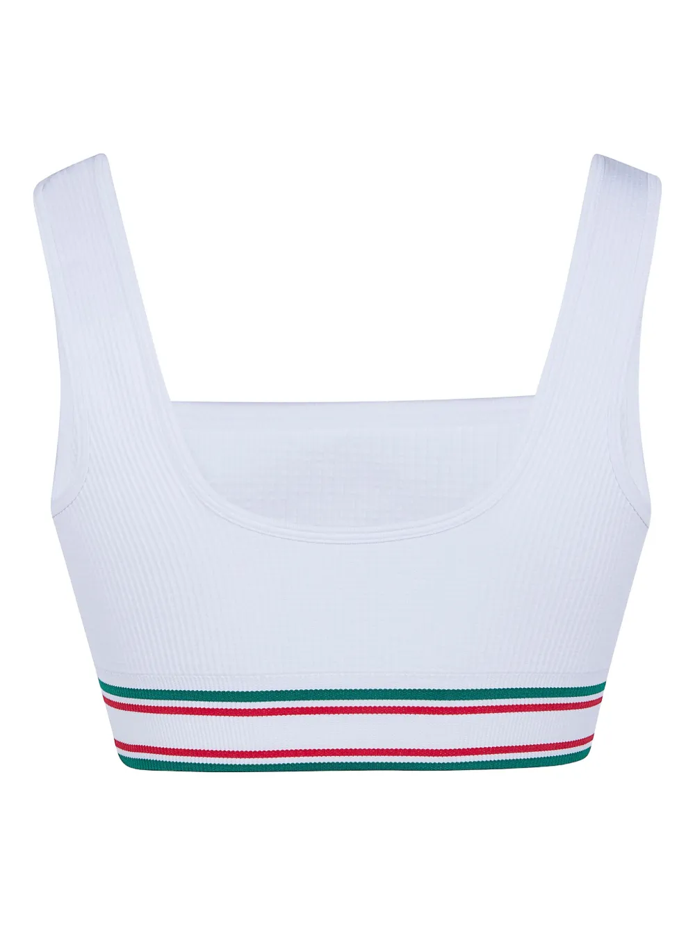 Белый топ без рукавов с квадратным вырезом, ребристой текстурой, полосатой отделкой и логотипом