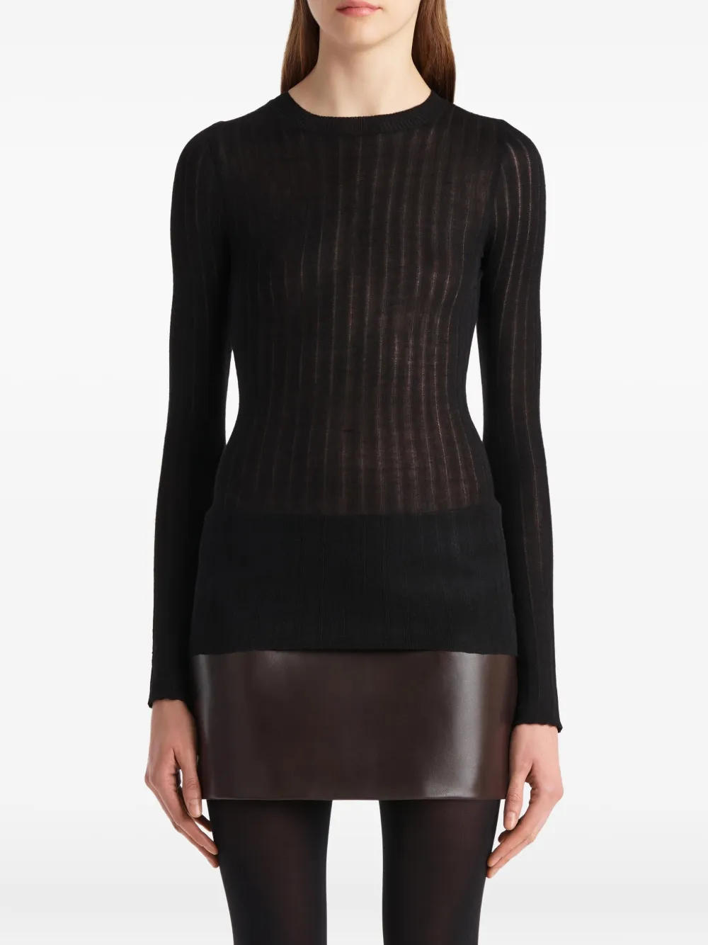 Черный в рубчик, трикотаж, круглый вырез, длинные рукава, полупрозрачный