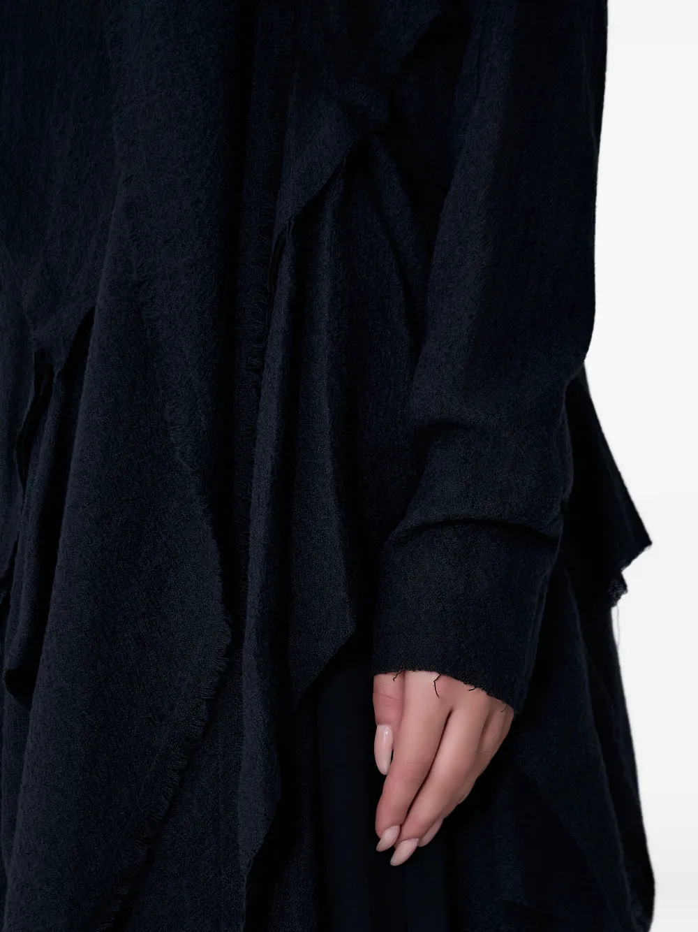 Черный топ с драпировкой на вырезе, длинными рукавами и драпированной отделкой