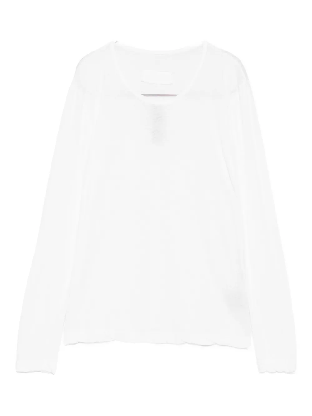 Белый смесь льна и хлопка длинные рукава круглый вырез прямой низ
