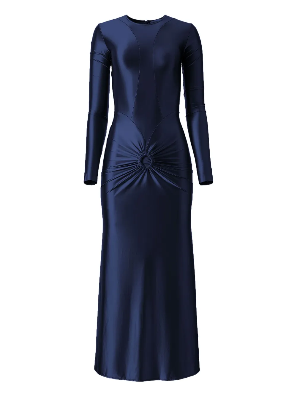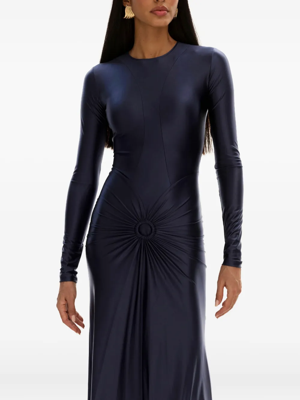 Темно-синий длинные рукава круглый вырез деталь со сборкой на талии декор в виде кольца