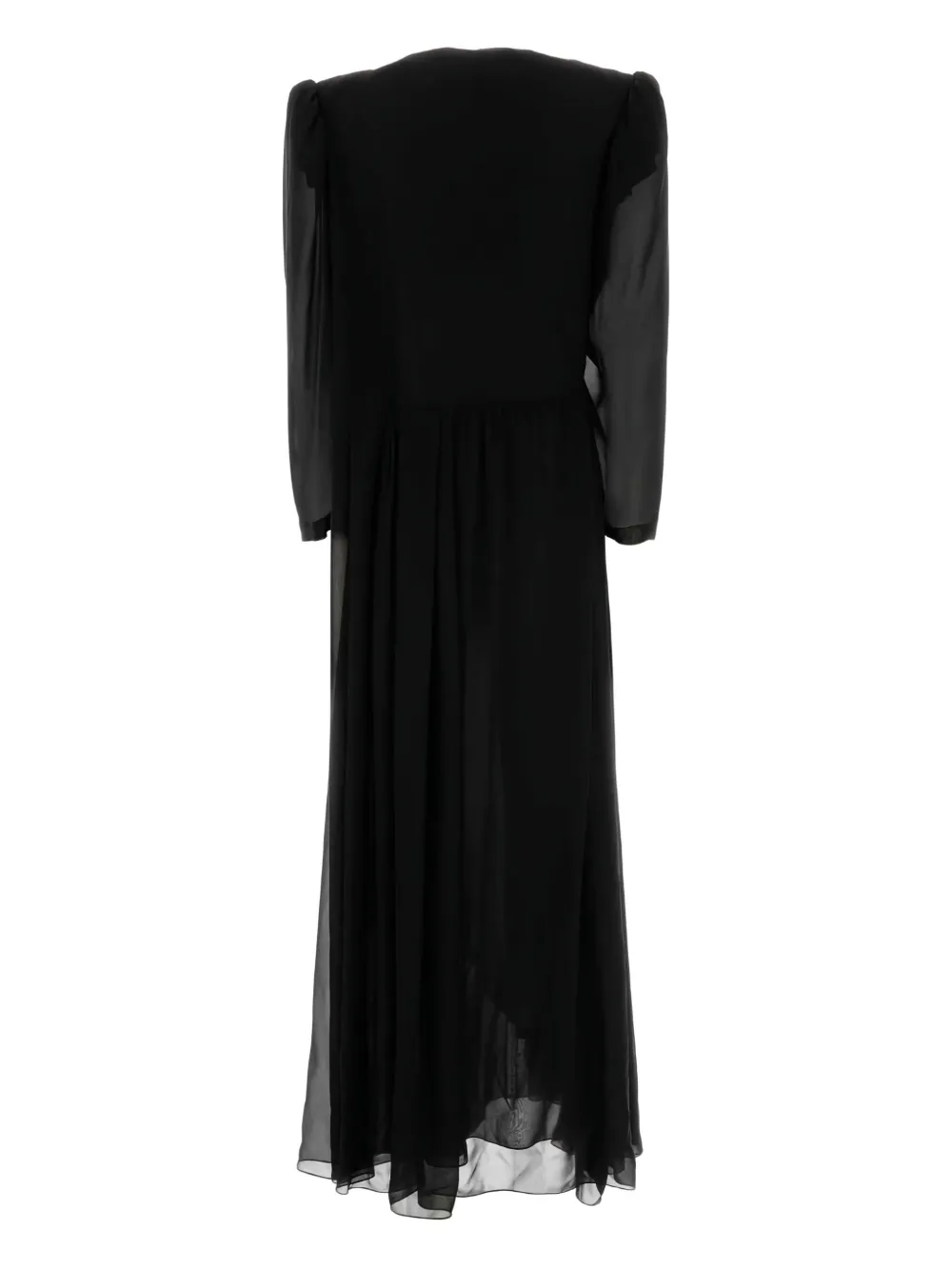 Черный шелковый креп пышные рукава асимметричный подол V-образный вырез эффект запаха