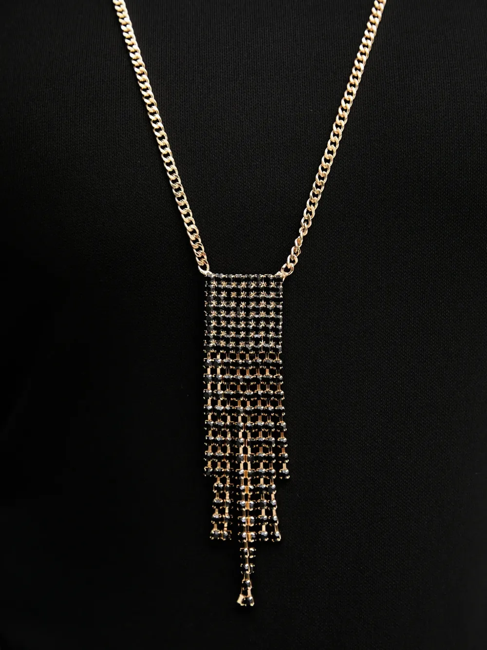 Черное платье в пол с круглым вырезом, узлом и разрезом внизу
