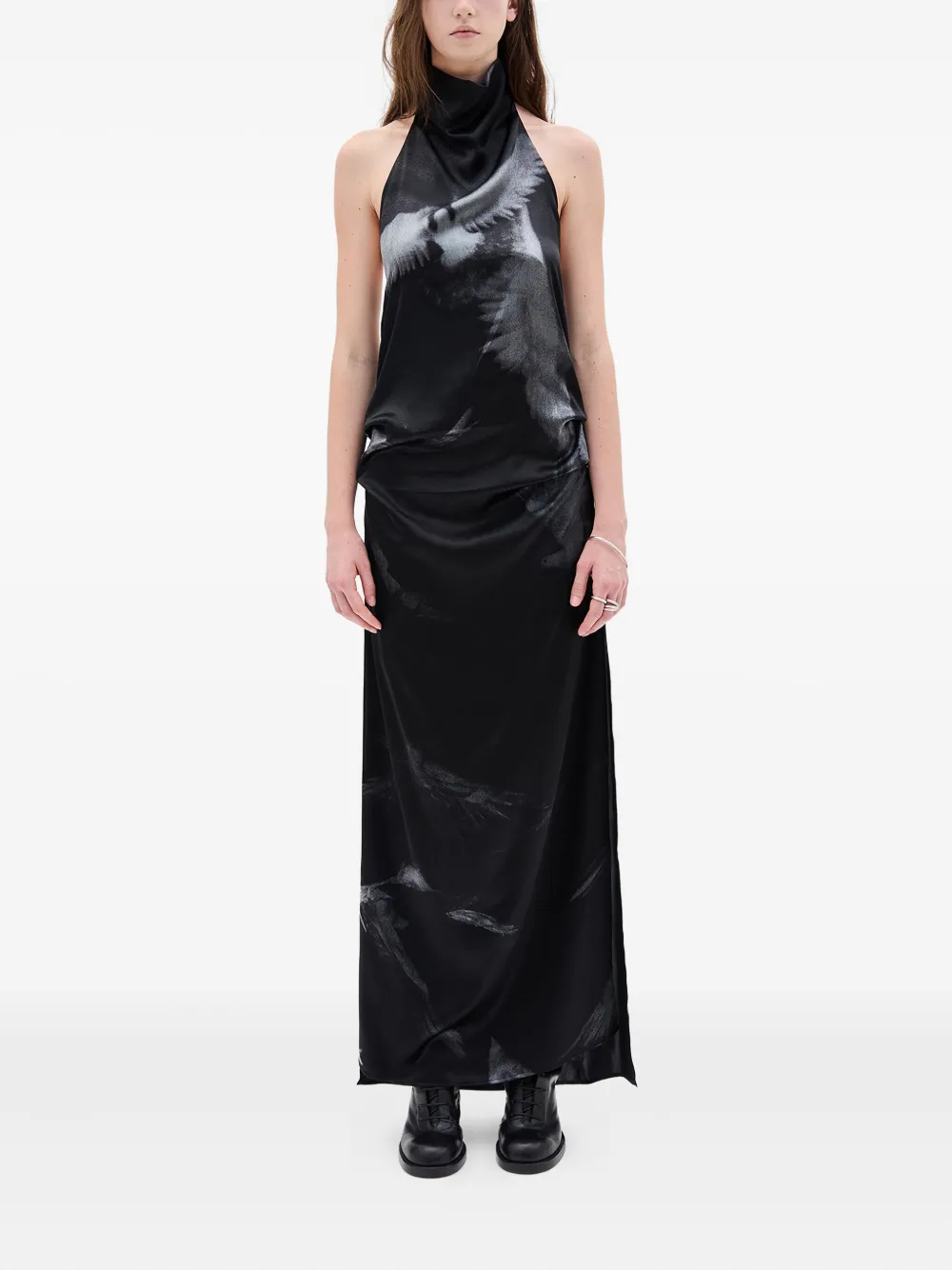 Платье на шее с принтом голубей Ann Demeulemeester, черный 101 865₽
