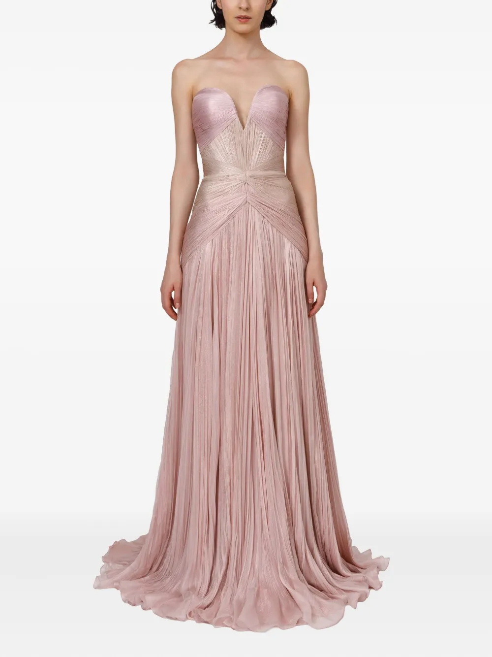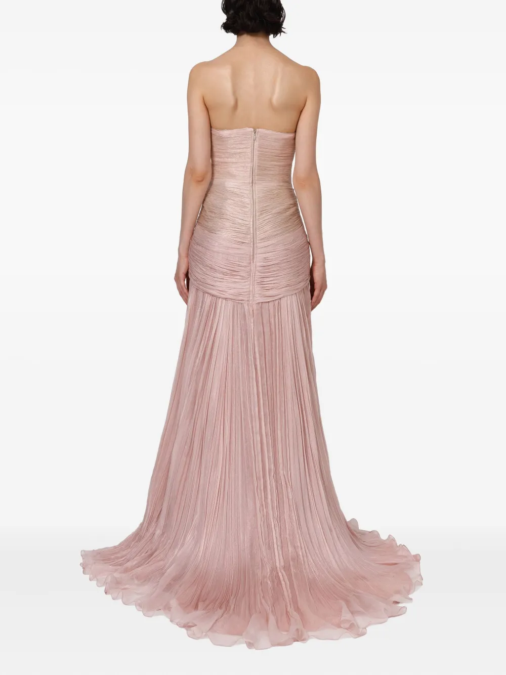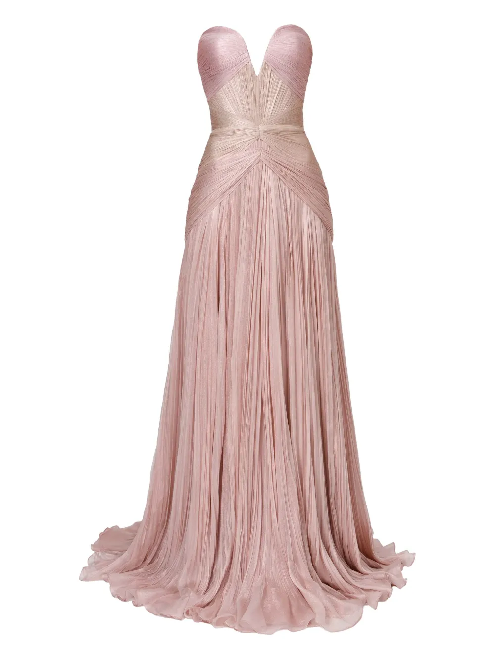 Розовое шелковое без бретелек плиссированное приталенная талия в пол