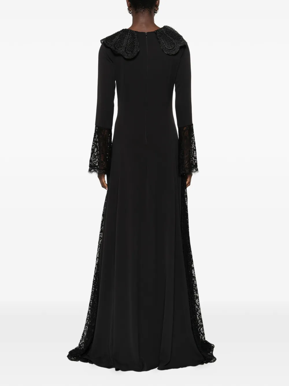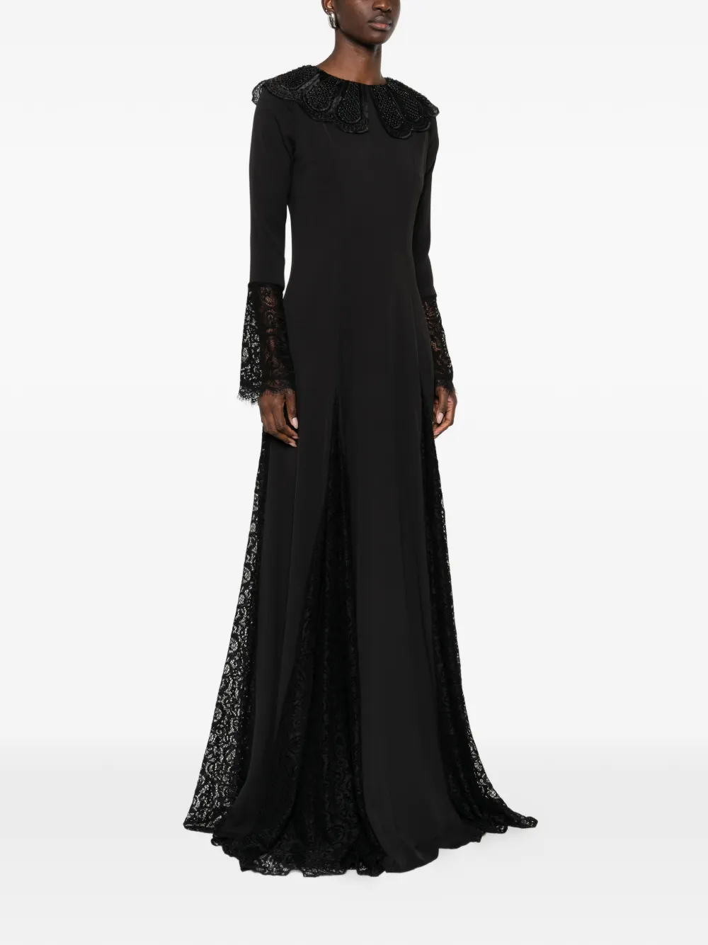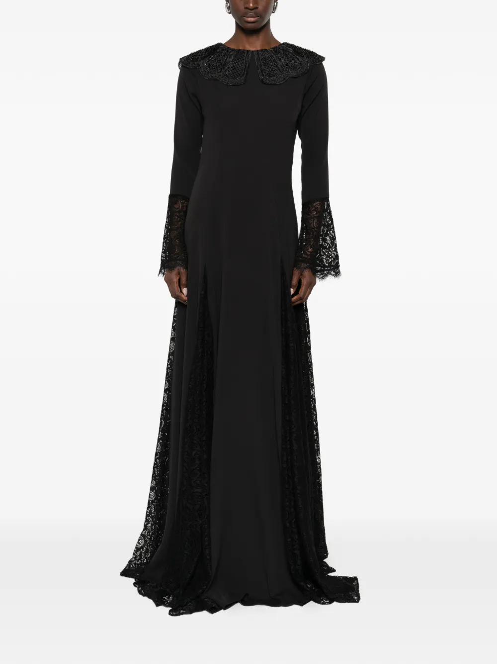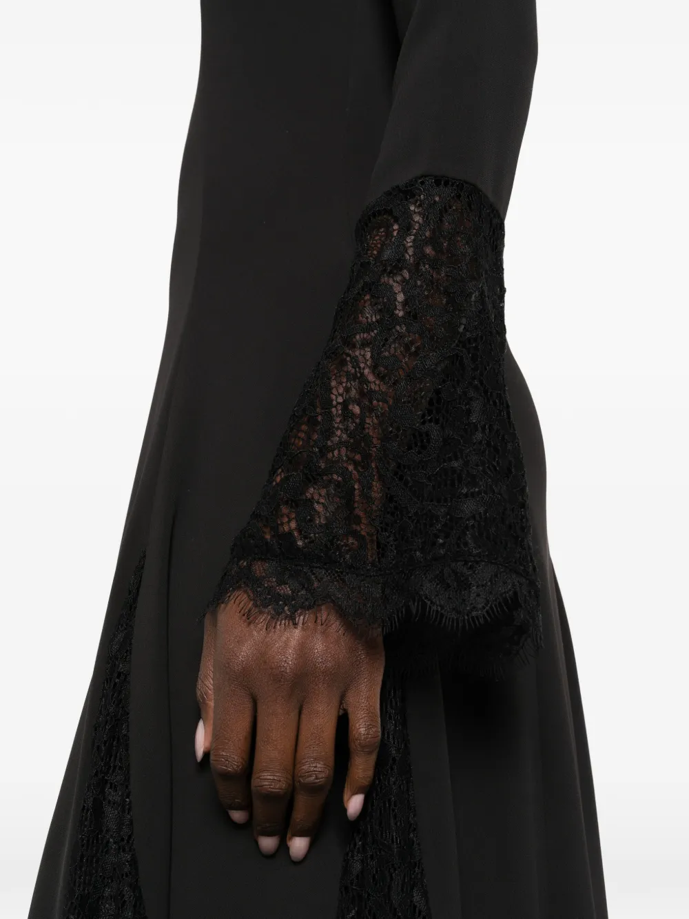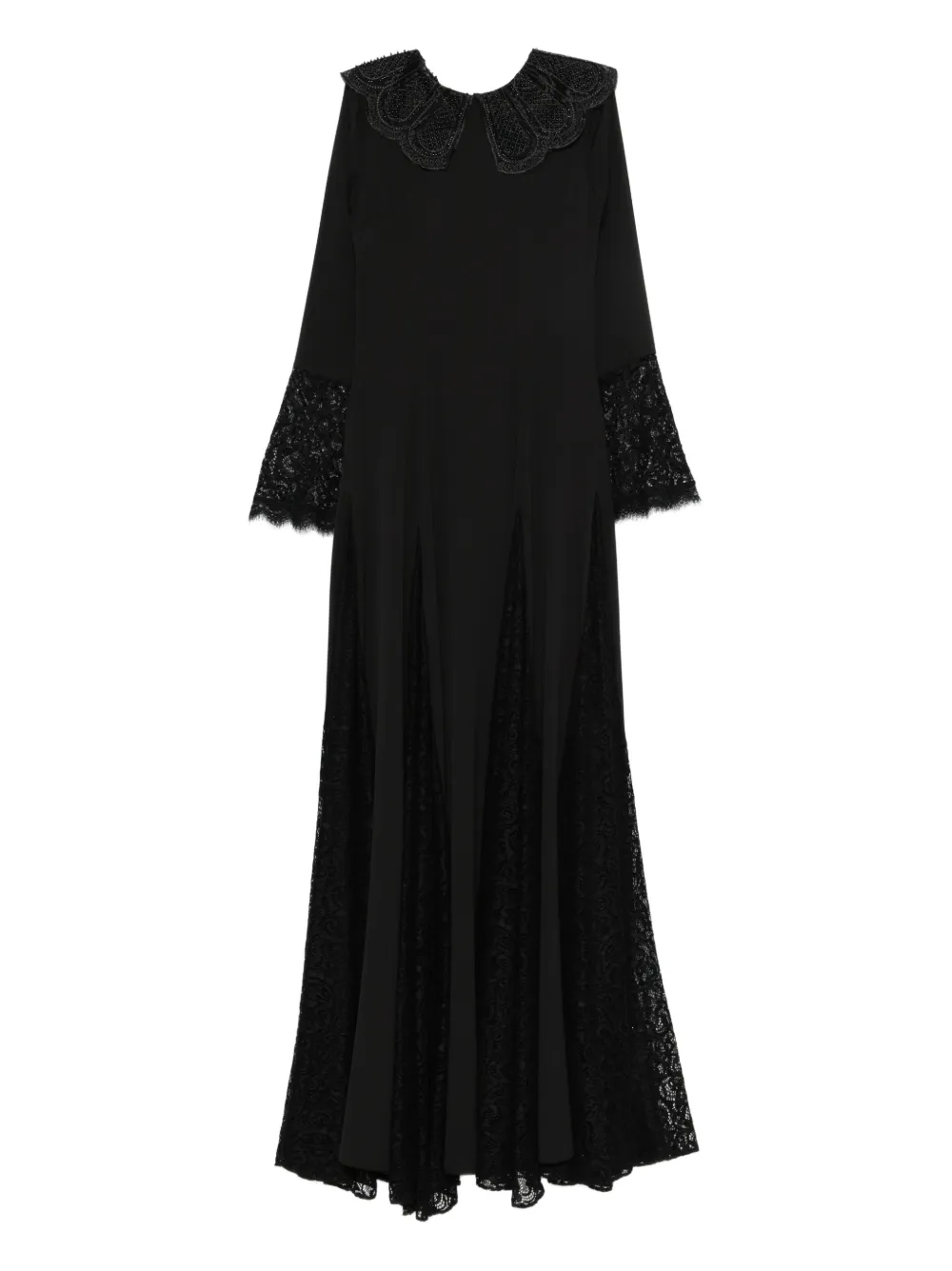 Черная кружевная отделка, расклешенные рукава, круглый воротник, юбка силуэта «А-линия»