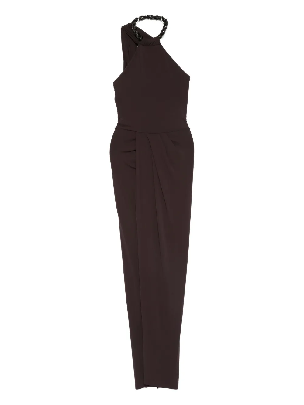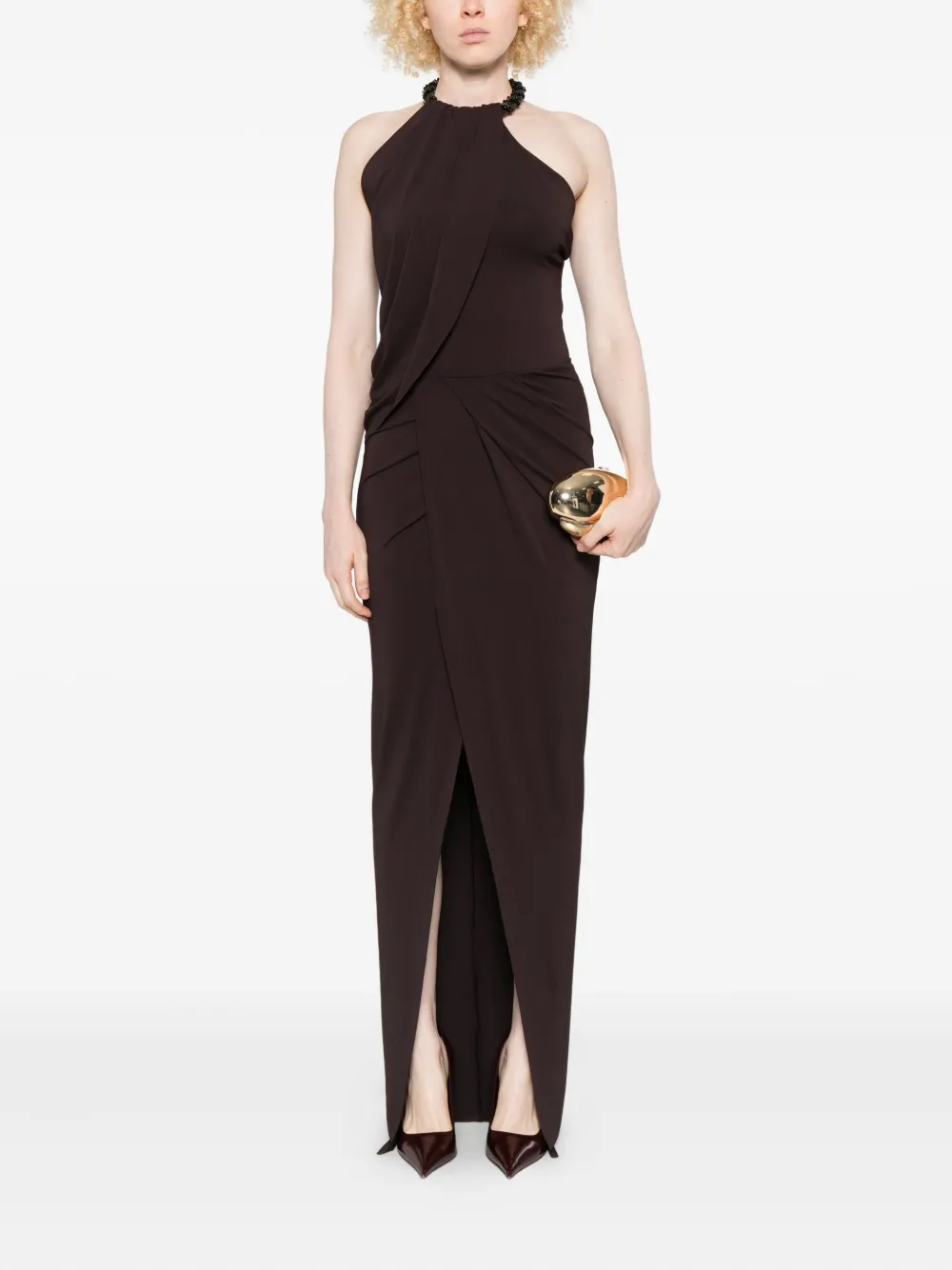 Коричневый платье с халтером драпированная юбка без рукавов