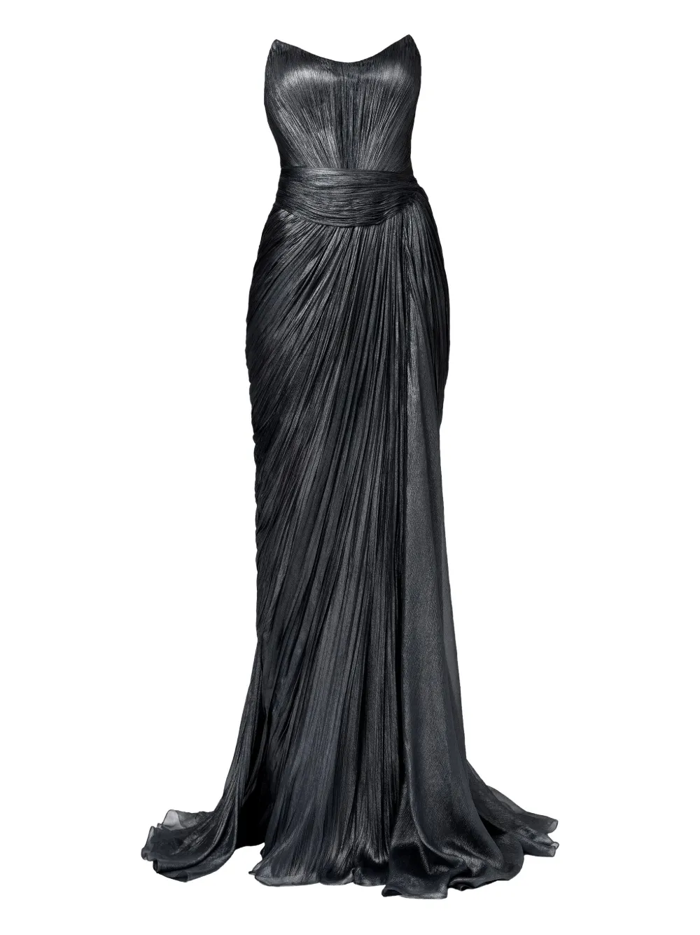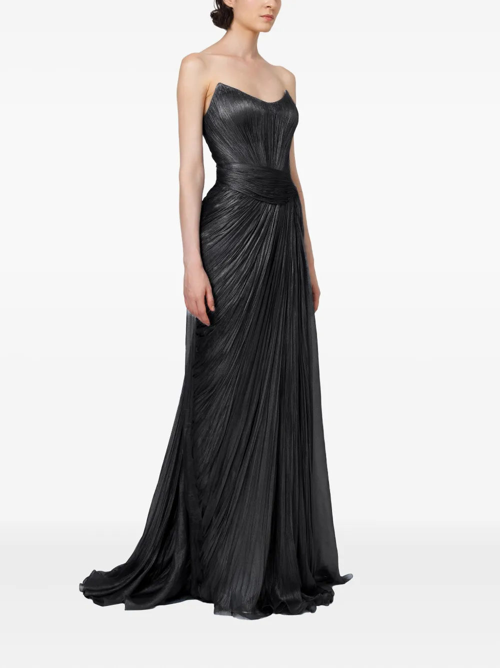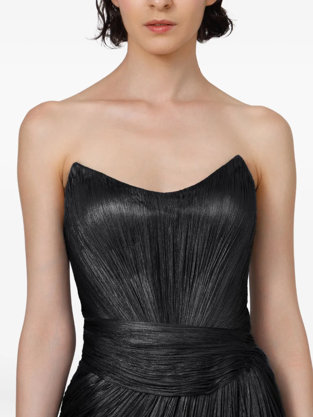 Черный плиссированный лиф драпированная юбка вырез «бандо» (без бретелек) приталенный крой