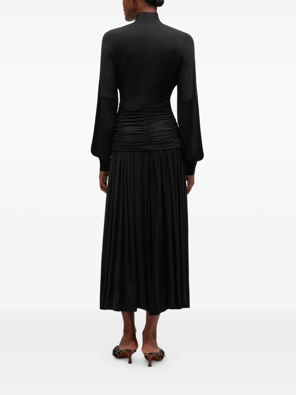 Платье миди со складками Ganni, черный