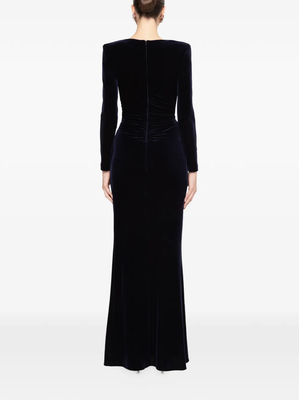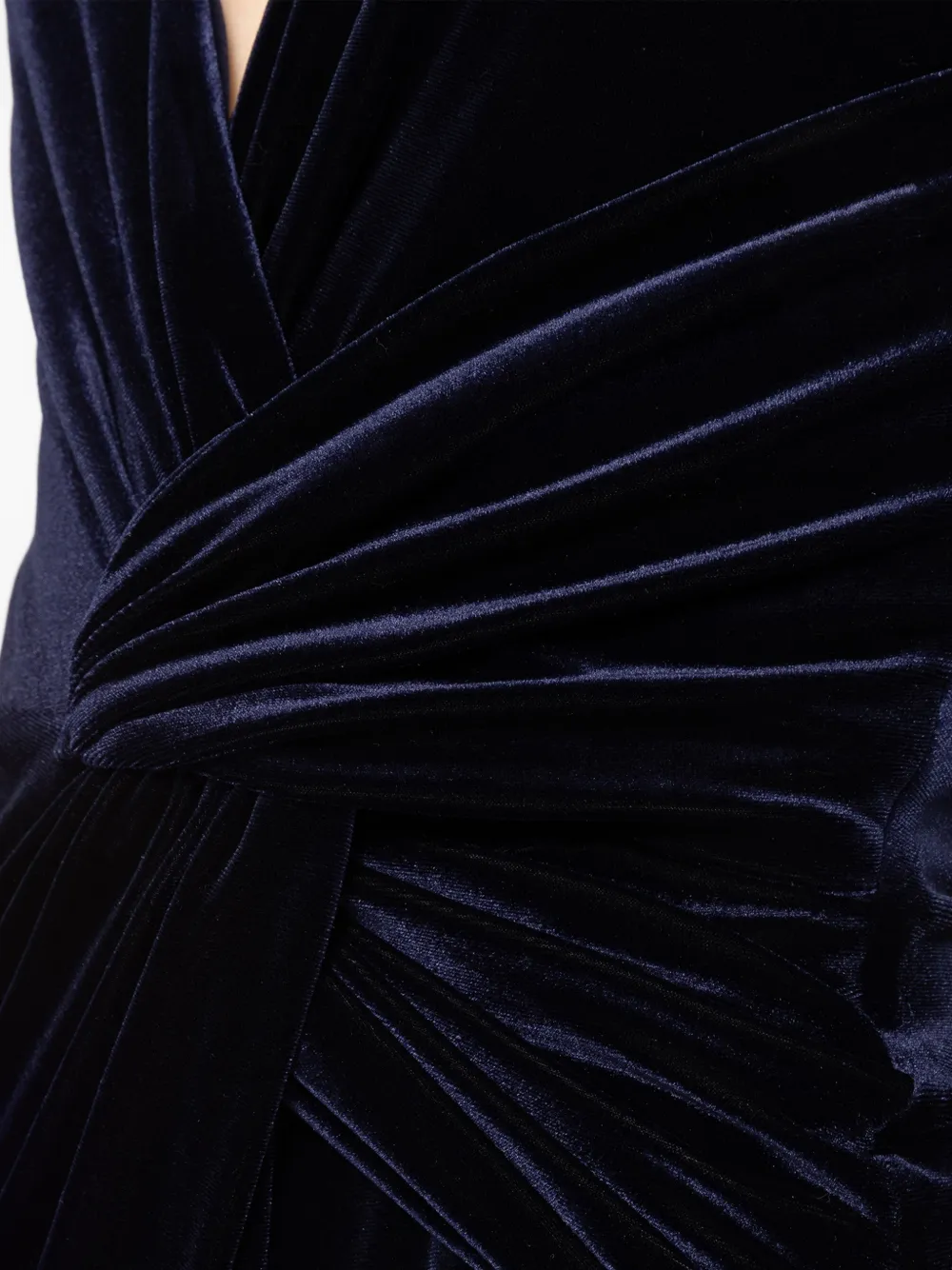 Темно-синее платье с V-образным вырезом, длинными рукавами, перекрученным элементом, длиной макси, застежкой-молнией сзади