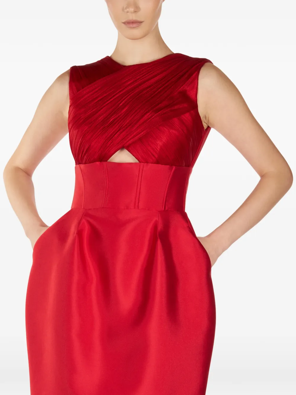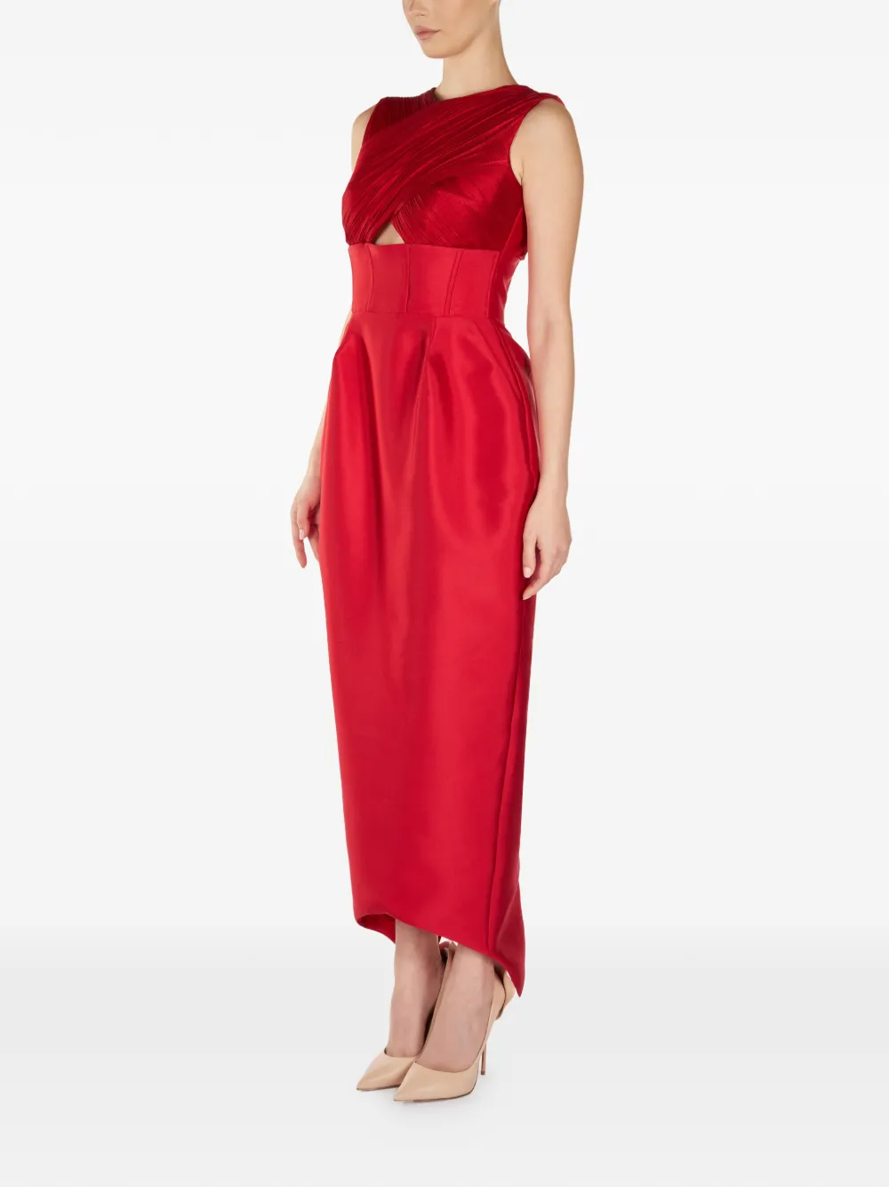 Платье миди с вырезами и плиссировкой Araftu, красный