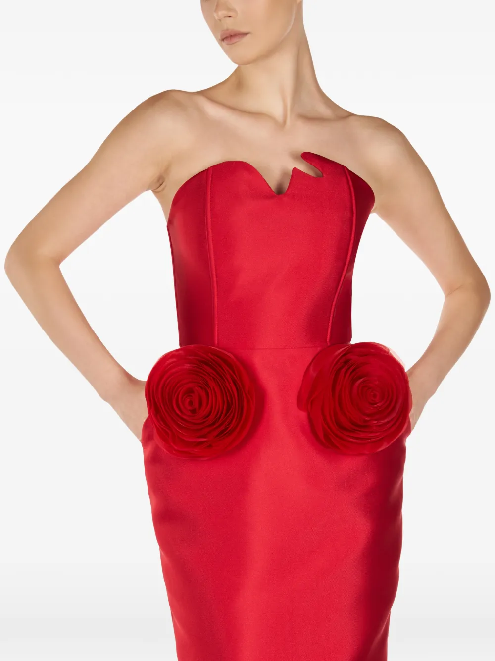 Платье миди без бретелек с розой Araftu, красный