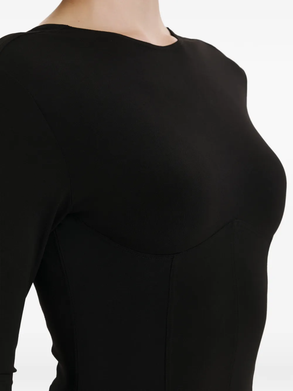 Черная футболка с длинными рукавами, круглым вырезом, комбинированными вставками, в пол
