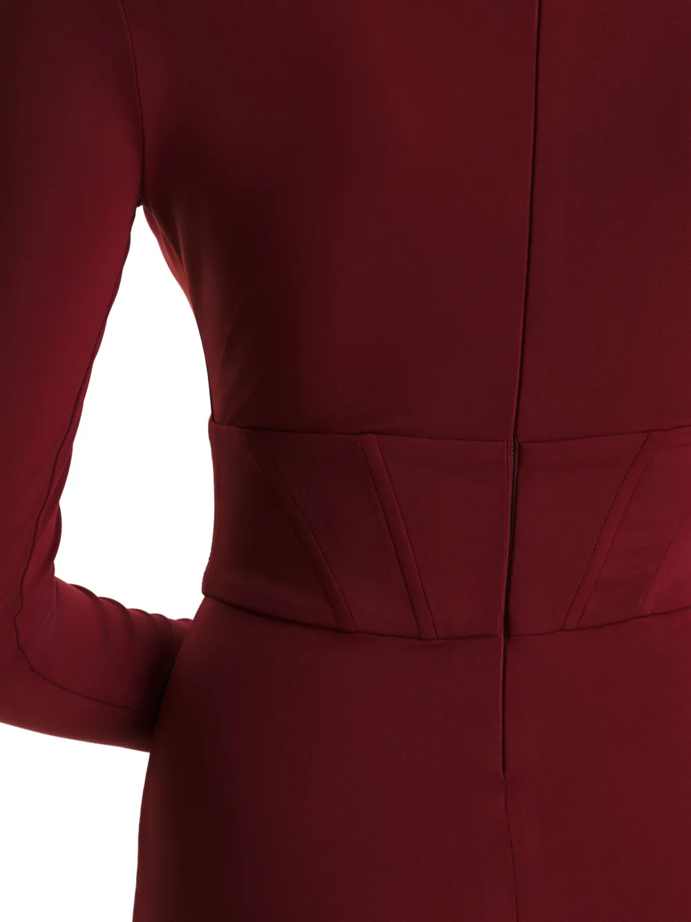 Красный топ с длинными рукавами, корсетной отделкой, разрезом сзади, круглым вырезом и скрытой застежкой-молнией сзади