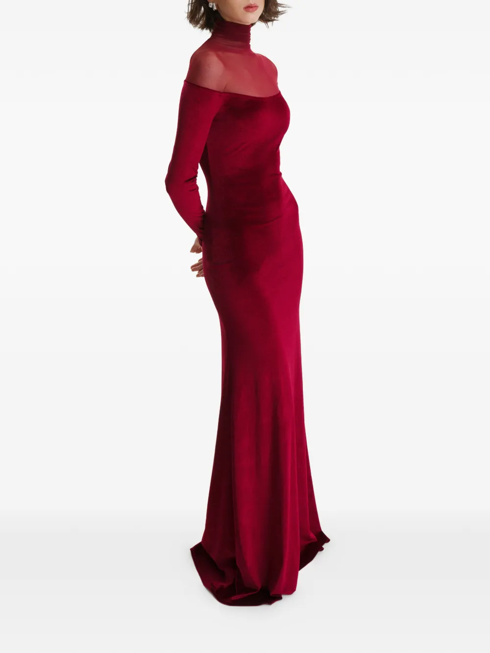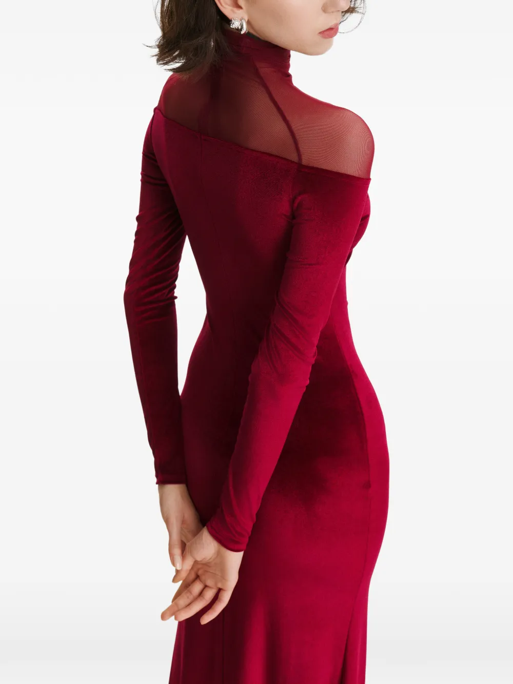 Красная водолазка из сетки с длинными рукавами, облегающий силуэт, длина в пол