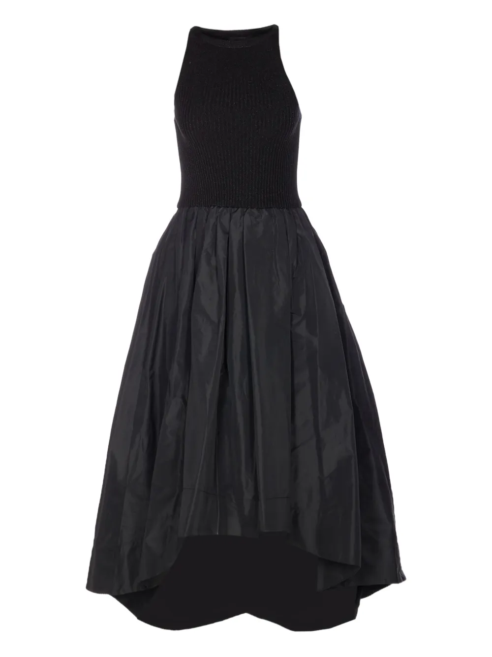Черный вязаный топ, широкая юбка, асимметричный подол, без рукавов