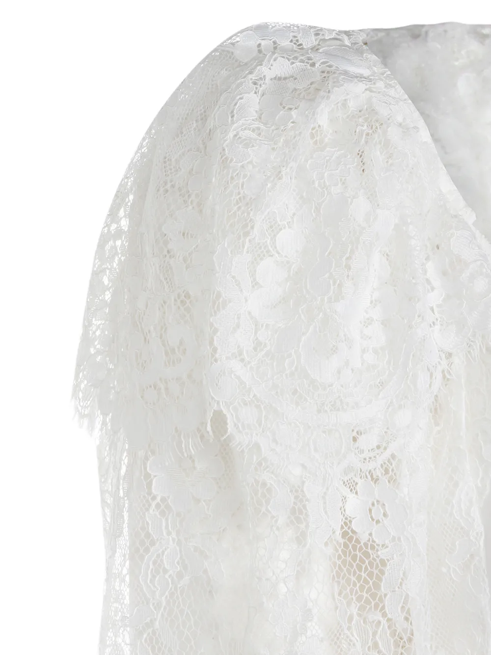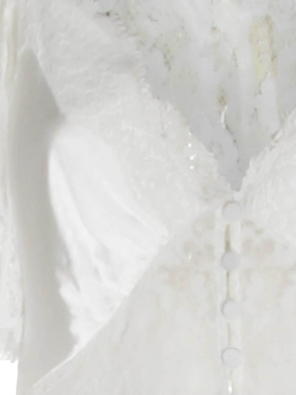 Белая отделка кружевом, короткие рукава, V-образный вырез, застежка на пуговицах