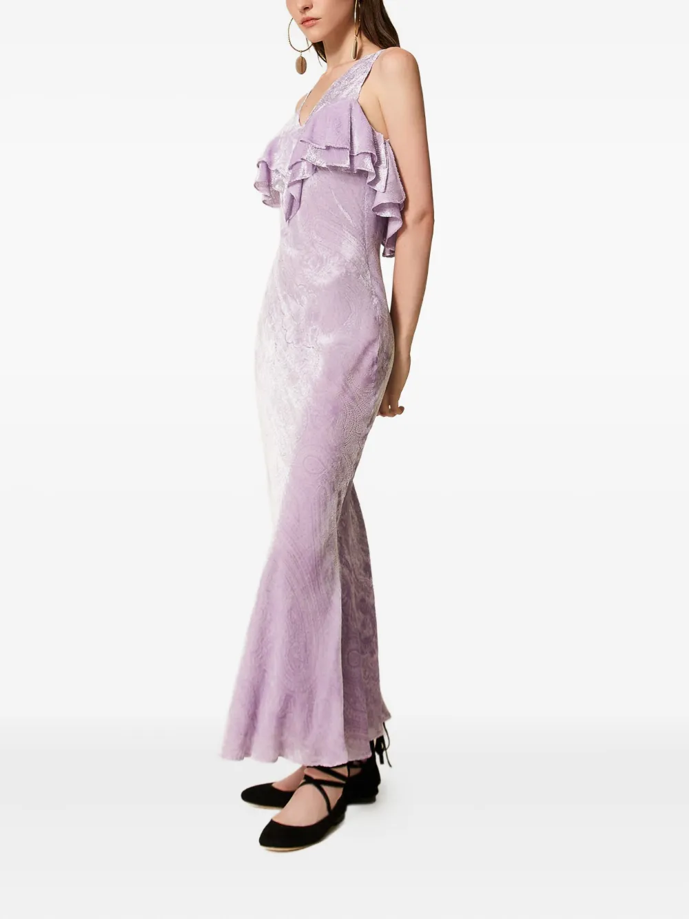 Бархатное платье макси с оборками Twinset, фиолетовый 67 701₽