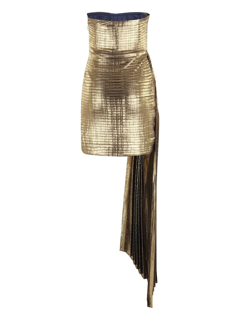 Золотой металлизированный эффект, свободный пояс, боковая застежка-молния