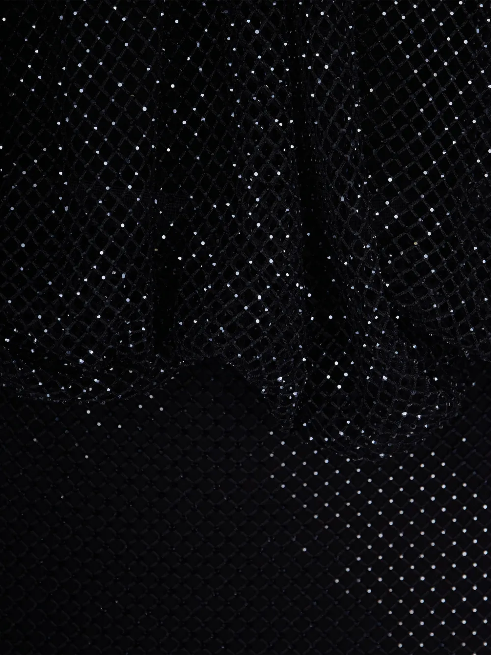 Черное платье миди облегающего кроя без рукавов с сетчатым верхом и присборенными деталями