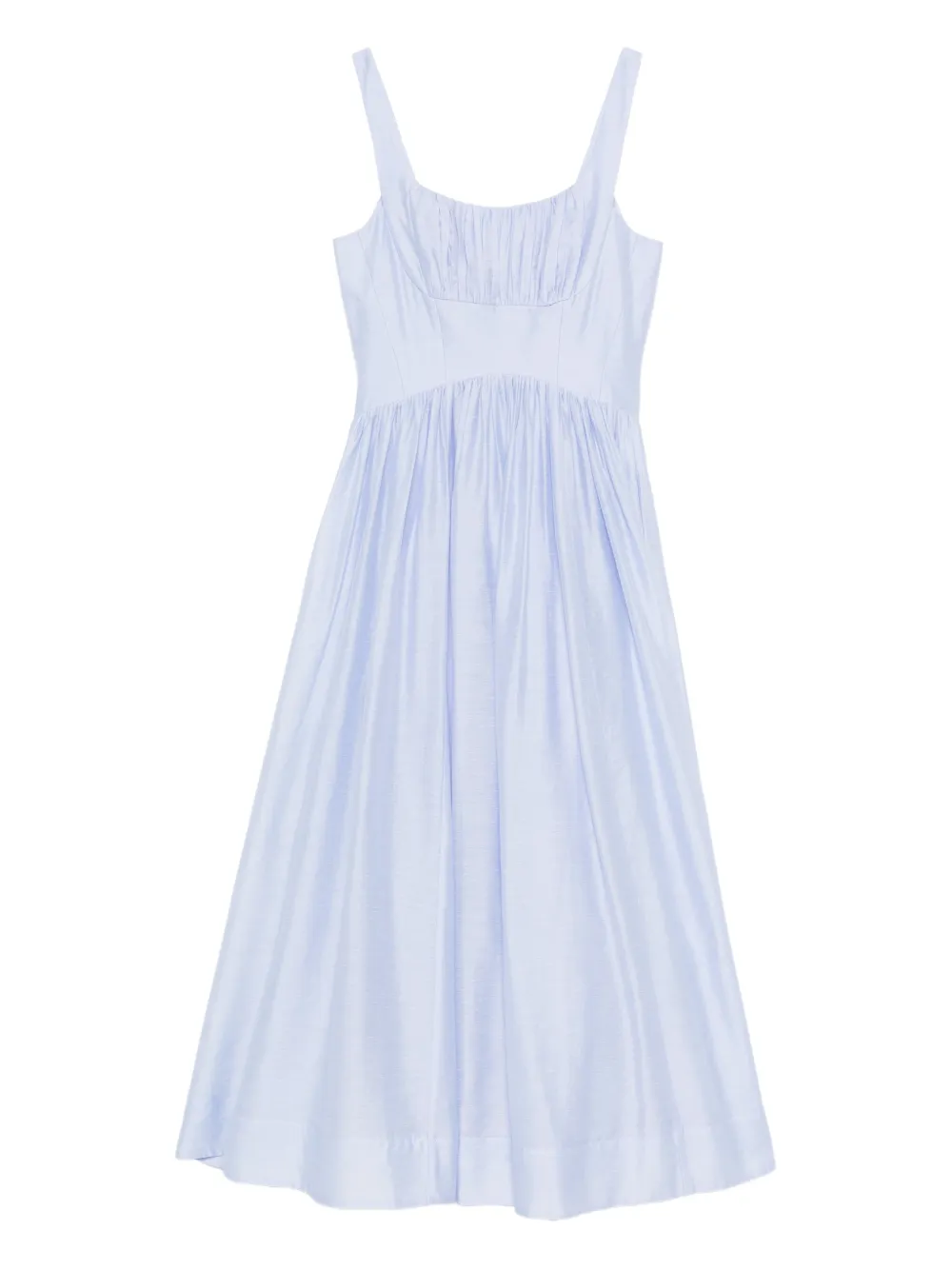 Синяя миди-юбка А-силуэта с квадратным вырезом и Gathered-деталями