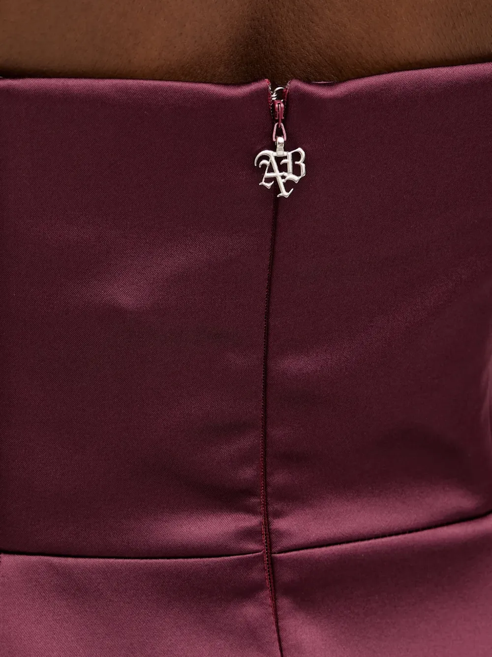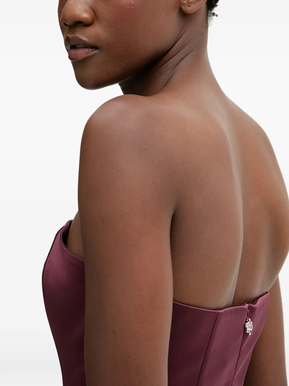 Бордовое платье без бретелек, на молнии, с приталенным силуэтом, длиной выше колена