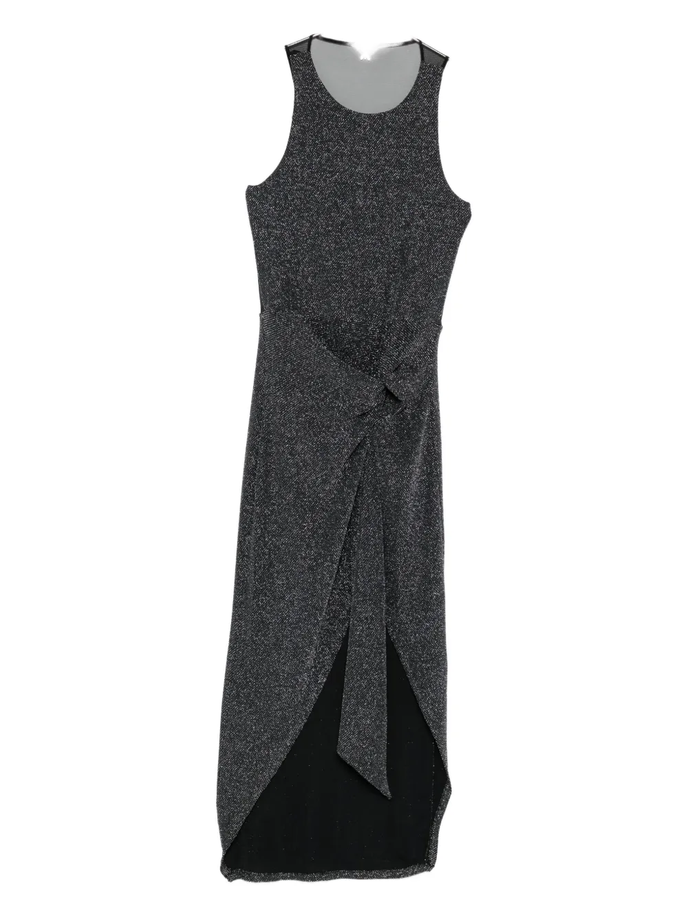 Черный вязаный люрекс без рукавов круглый вырез разрез спереди