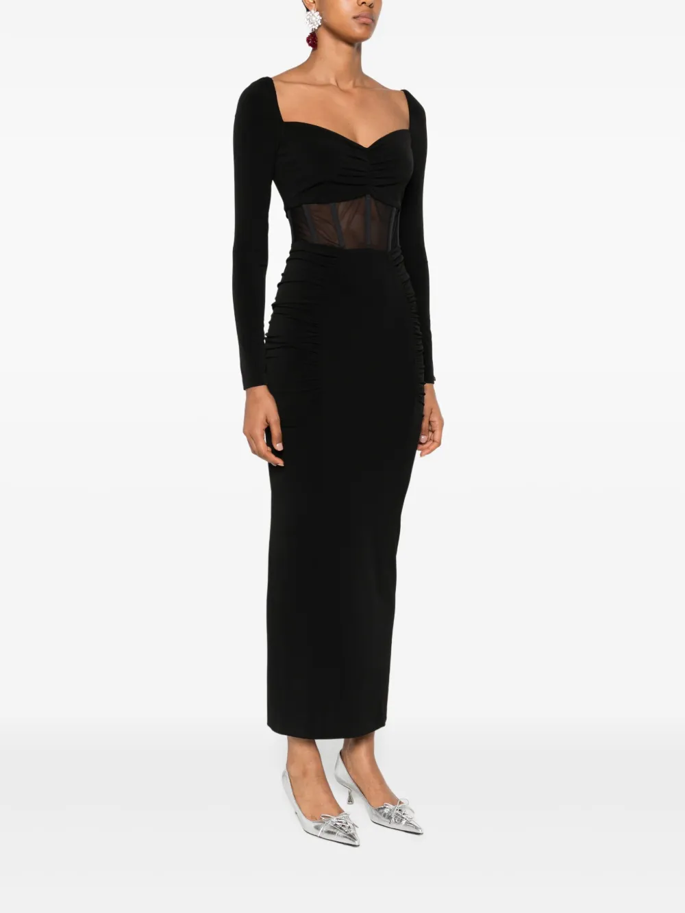 Платье миди с длинными рукавами Nissa, черный