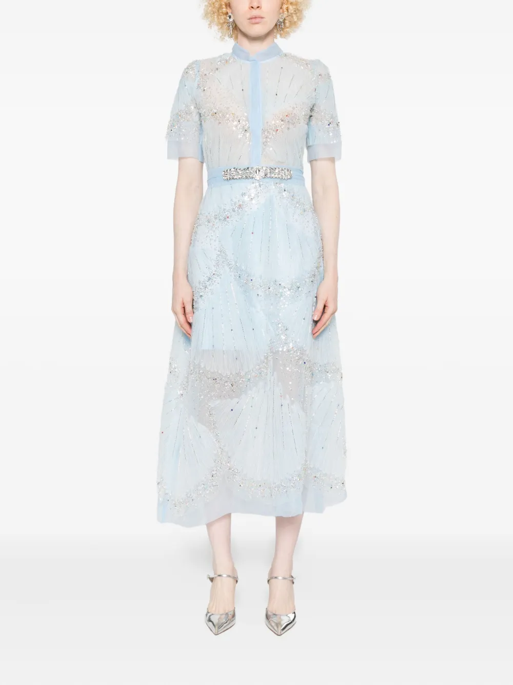Платье миди с кристаллами Miau By Clara Rotescu, синий
