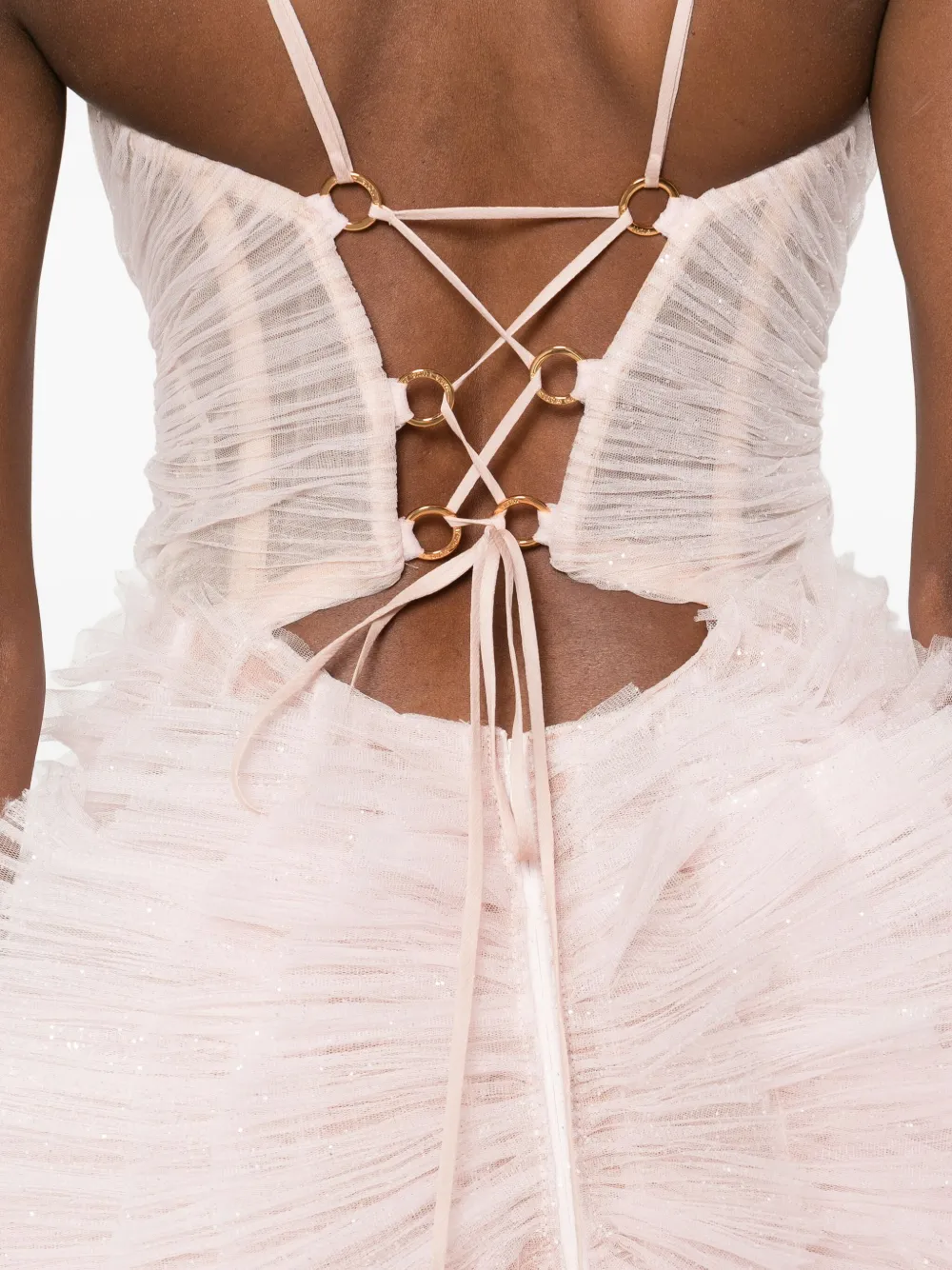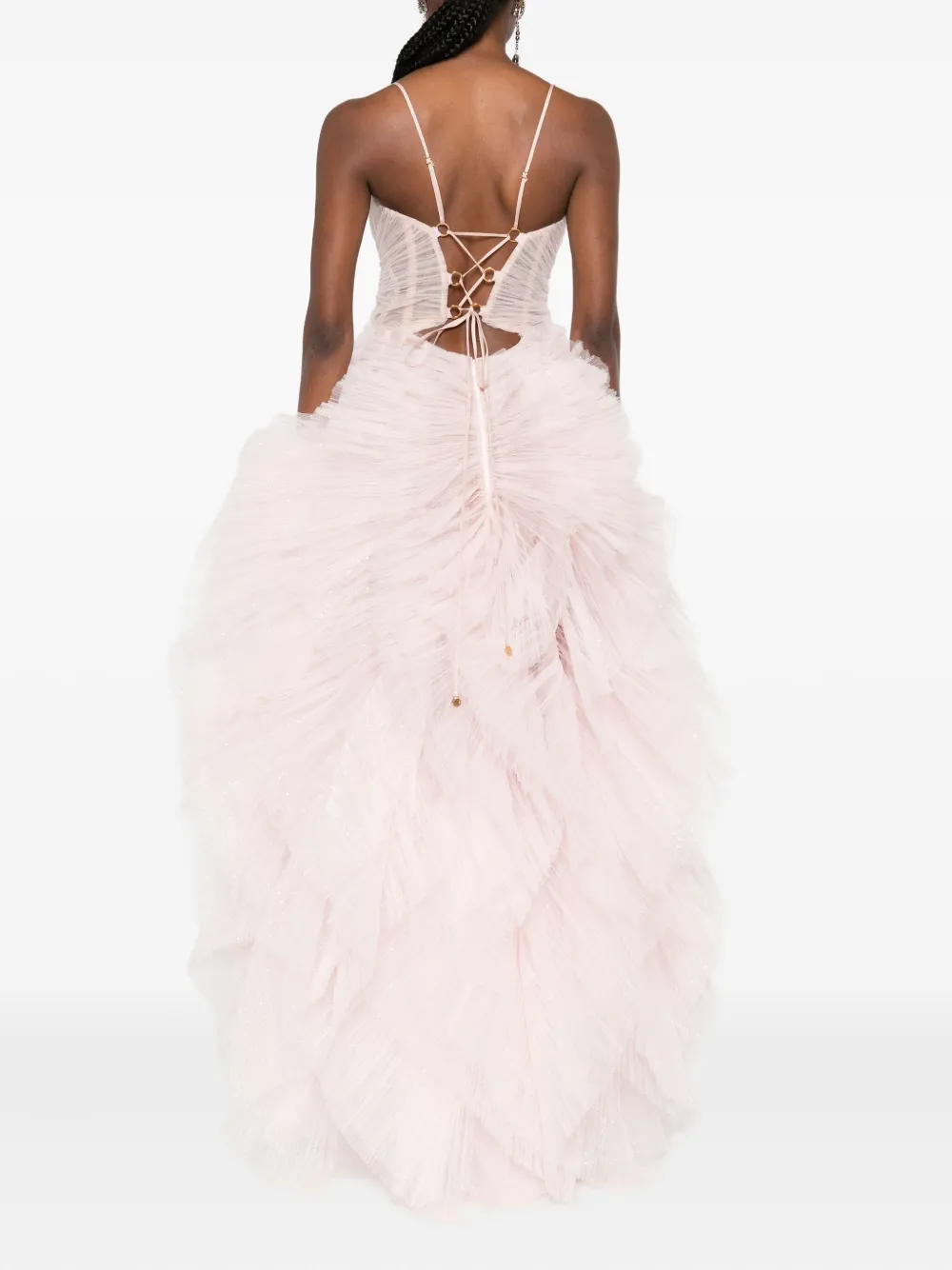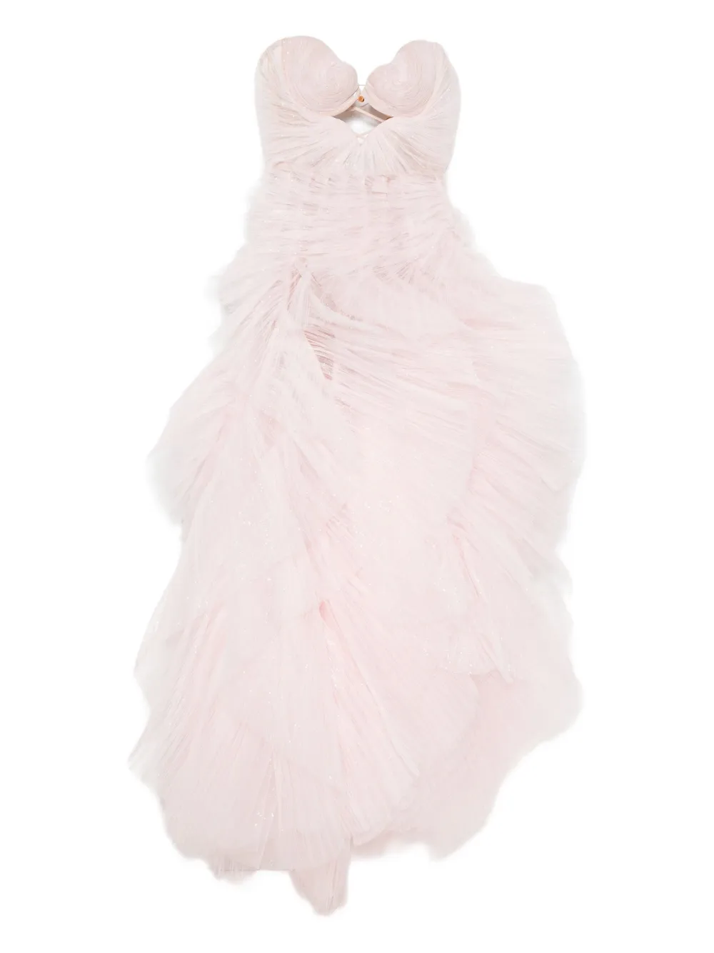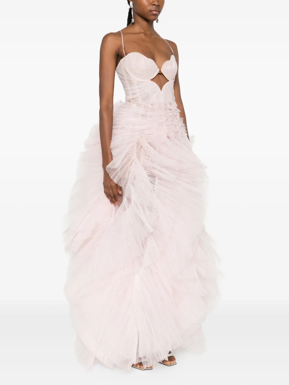 Светло-розовый многослойный дизайн с оборками, бретели-спагетти, вырез сердечком, присборенная отделка